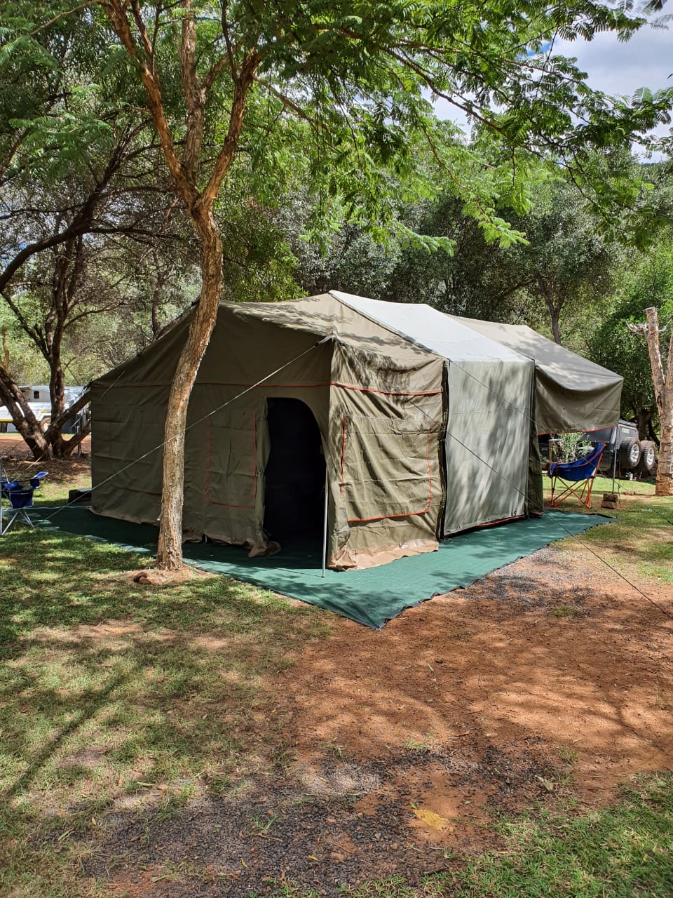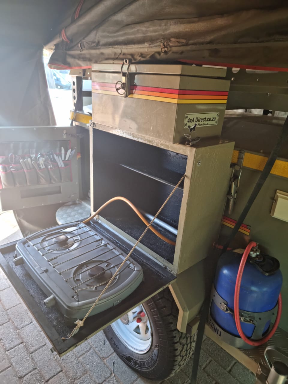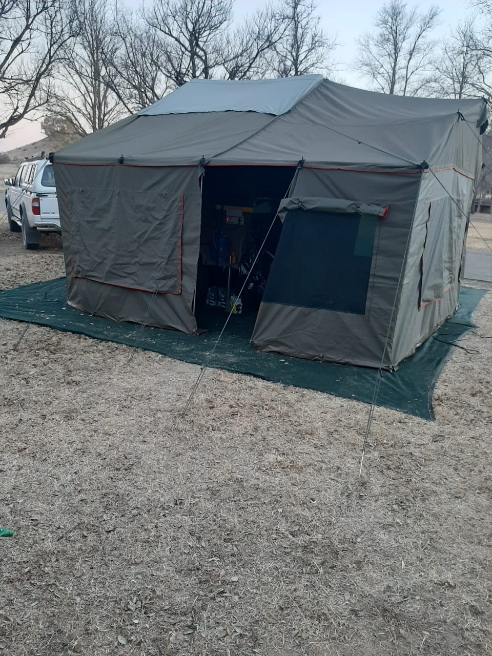 - 360-degree tent with sides – Tent surrounds trailer completely if all set up