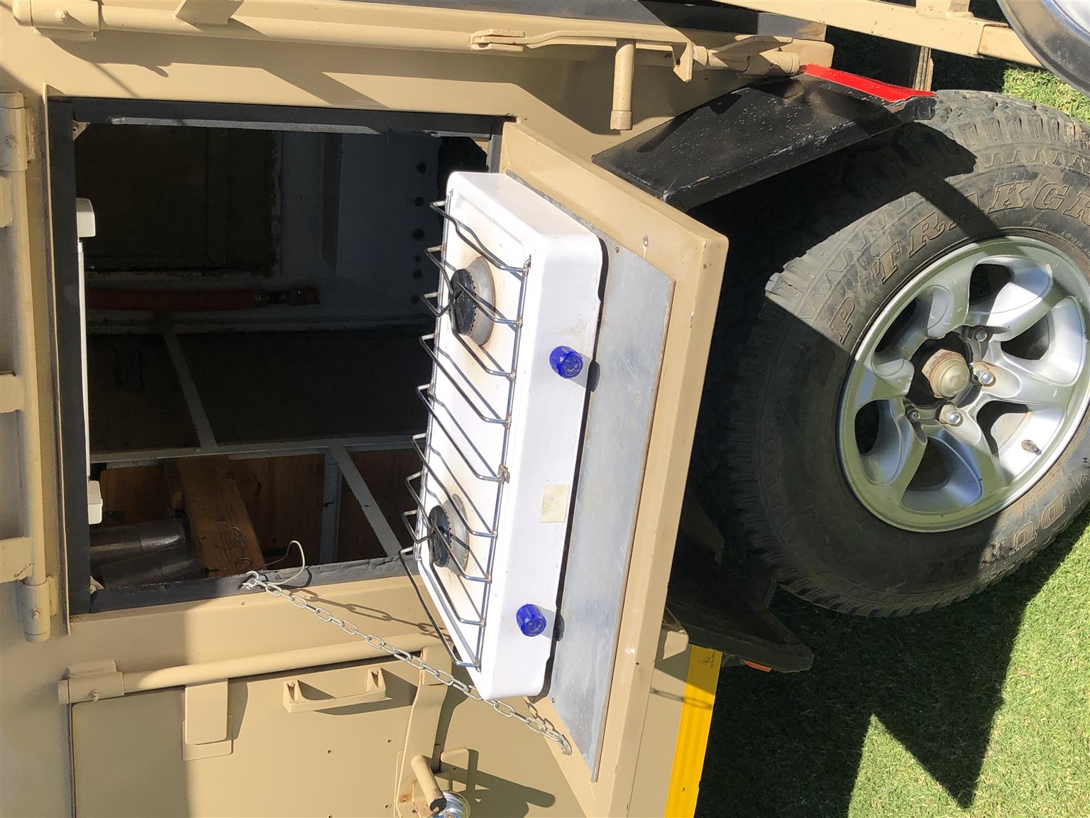 4x4 Camper. Very strong body. Lots of packing space for all your camping gear, Includes 2-plate gas stove, washing basin, table, braai, solar panel.