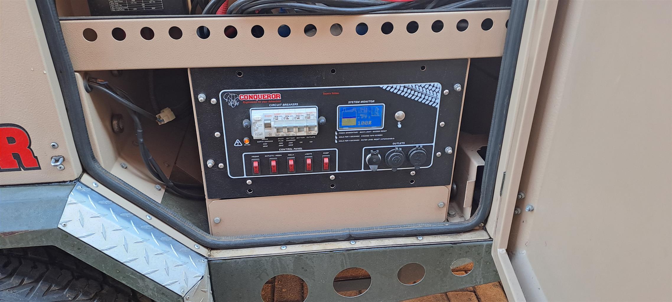 360 awning, mounted L shape awning, National Luna Twin 90L Fridge, New Vectron invertor, New Conqueror Electrical Control panel, Extra room can sleep 2 or storage. Cadac 2 plate stove