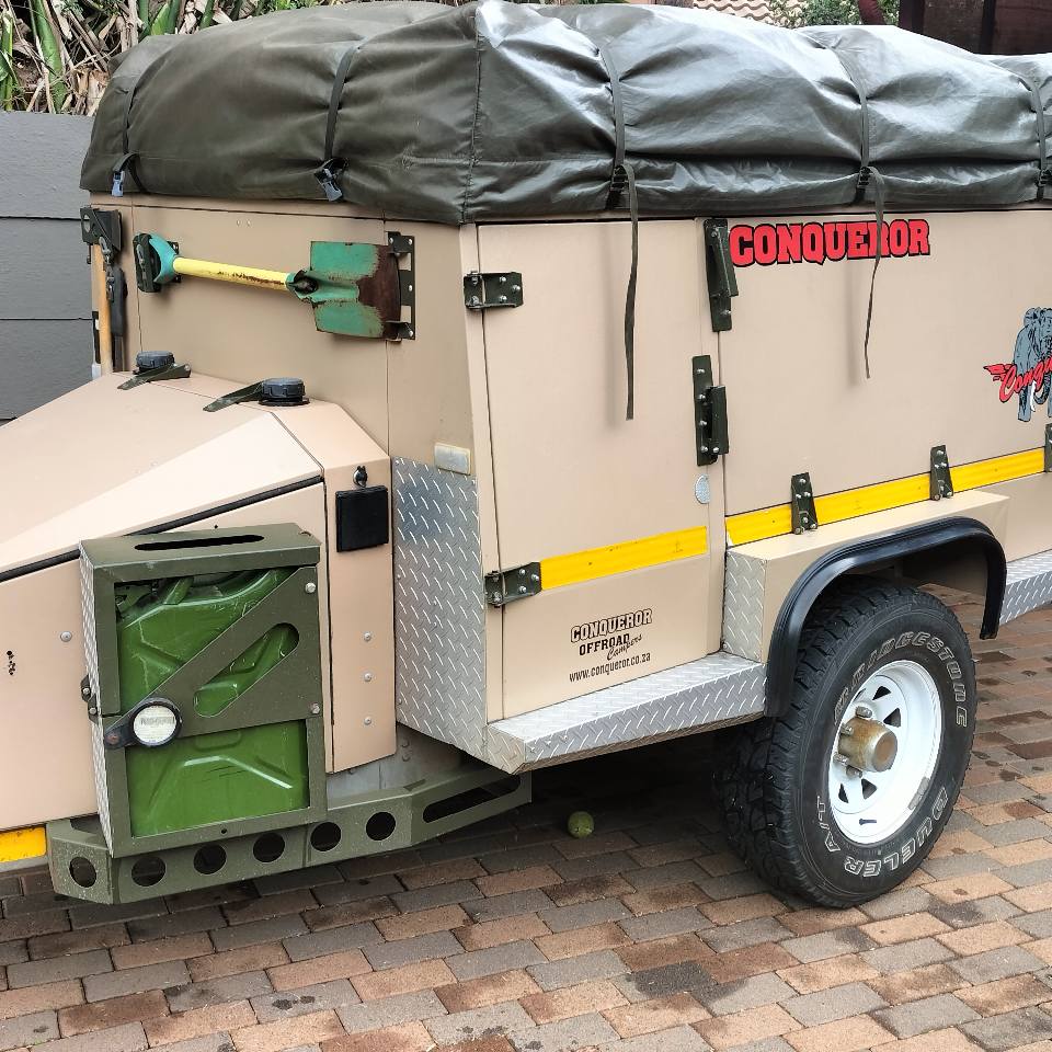 🏆🏆 Conquerer Conquest in immaculate condition. Ideal compact 4x4 Trailer. * Snowmaster Fridge/ Freezer on slider * Extendable large double bed with mattress. * 2 x Water tanks with taps at back * 2 x Jerry cans with lockable holders * Gas stove * Full around awning with all poles ,ropes and pegs * 2 x Gas bottles * Vectron charger, power supply with 2 x batteries * 2 x additional fans All documentation and license in order. Sparewheel & RWC included. Registration / Finance / Delivery available (add costs) Call or whatsup 0845820613view more. Located in Centurion. 🏆 R 98 500.