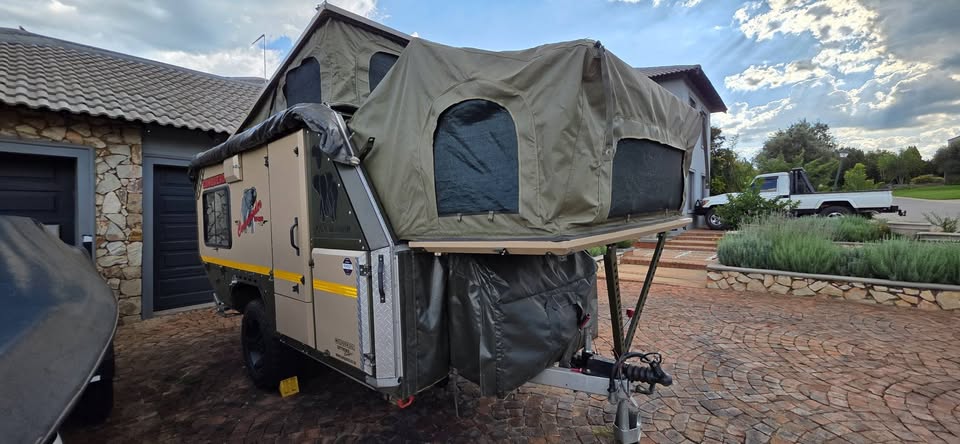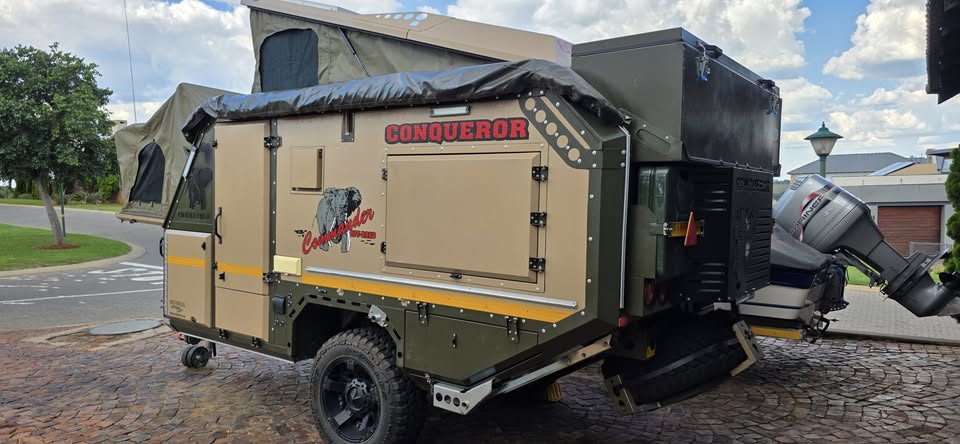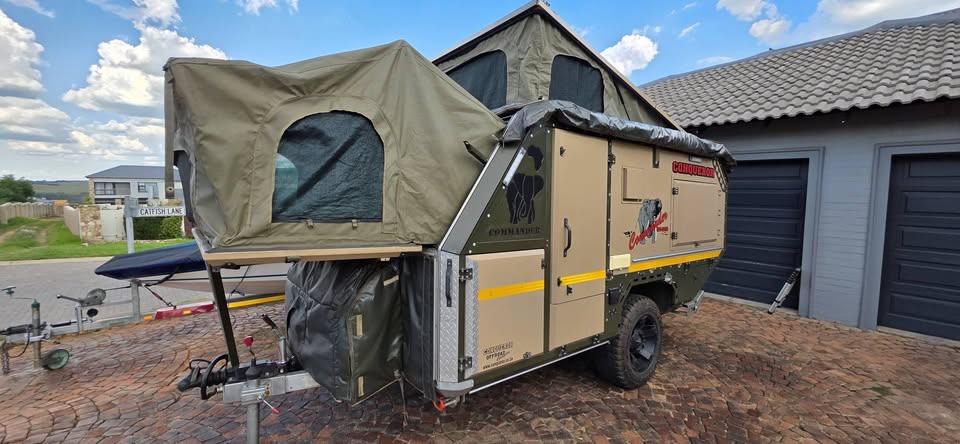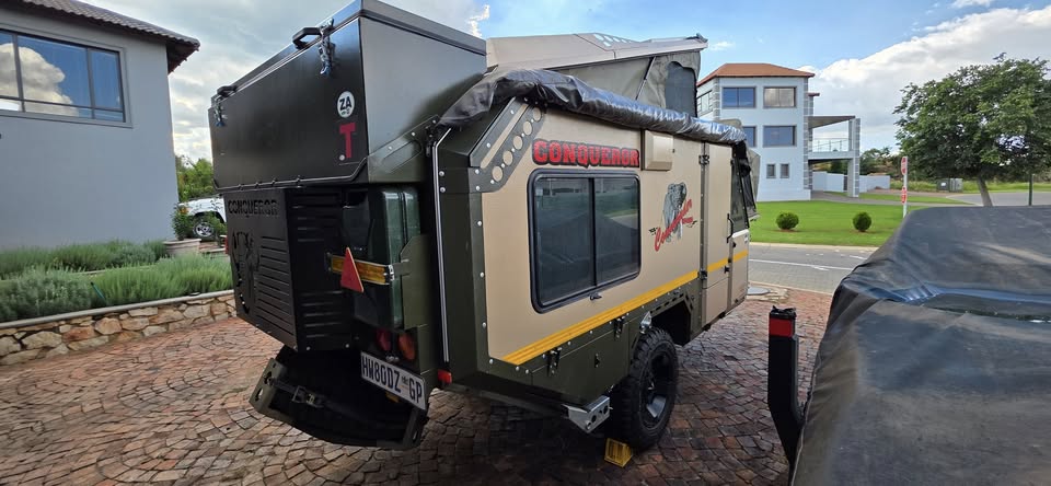 Conqueror Commander They need no introduction, this is the ultimate in off-road Camping Trailers. In immaculate condition, never used for serious off-roading. Extra's: - 12 000 Btu Aircon (R30 000) - Upgraded Suspension with air helpers - Solar System - Deep Cycle Batteries - Luna Twin Fridge/Freezer (Dual Zone) - Big Off-road Mags, tyres and spare wheel (New) - Full Side Tent - Full Bathroom Tent + Shower - Large Accessory/Storage Bin (Waterproof) - Geyser 220v/Gas - 2 Gas Bottles - 100lt Water Tank built in - Wash basin/ Rinse basins/Drying Rack - Additional large Silver reflective awning - Original Fitted sheets - Kitchenette - Removable Steel table - 220v Extension/accessories - Full storage Cover for entire trailer - 12v Lights inside and outside - 2014 Model - Comfortably Sleep 4 Adults - Papers/Licensed - Jerry Cans. Shovel. Axe The trailer was seldomly used and still like new. Always stored under cover. Tents also like new Located at Bronkhorstspruit Dam Ready to hook and go on your next adventure! Selling Price @R320 000 Finance Available Contact Lloyd [hidden information]