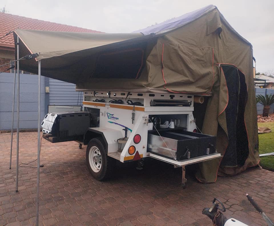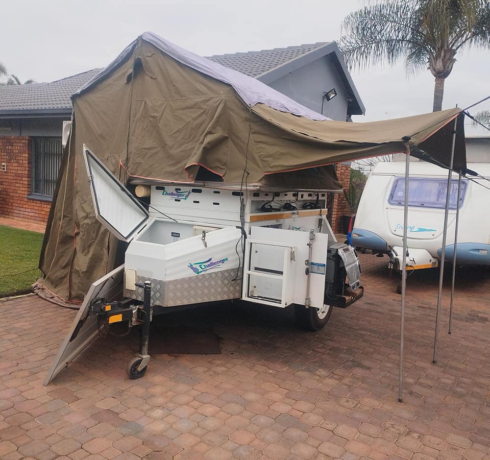 🔥08 Challenger Camping Trailer🔥 *Waiico Fridge/freezer+ Canvas Cover. *Full tent + Awning rite around trailer *Battery system+ charging system. *Solar panel included *Double bed *Drawer system at the back *Powerpoints *Extension included. *All paperwork up to date *Sparewheel. *Powerpack. *Very Neat Condition. Basically a Full House just Hook & Go‼️ #CFadventures 📍Pta Mountain View📍 📞/📞 💰R49 500💰