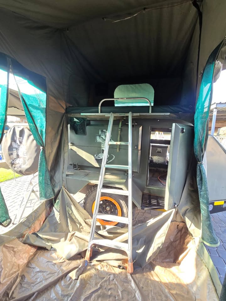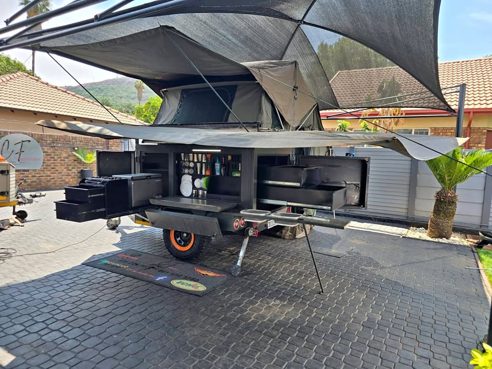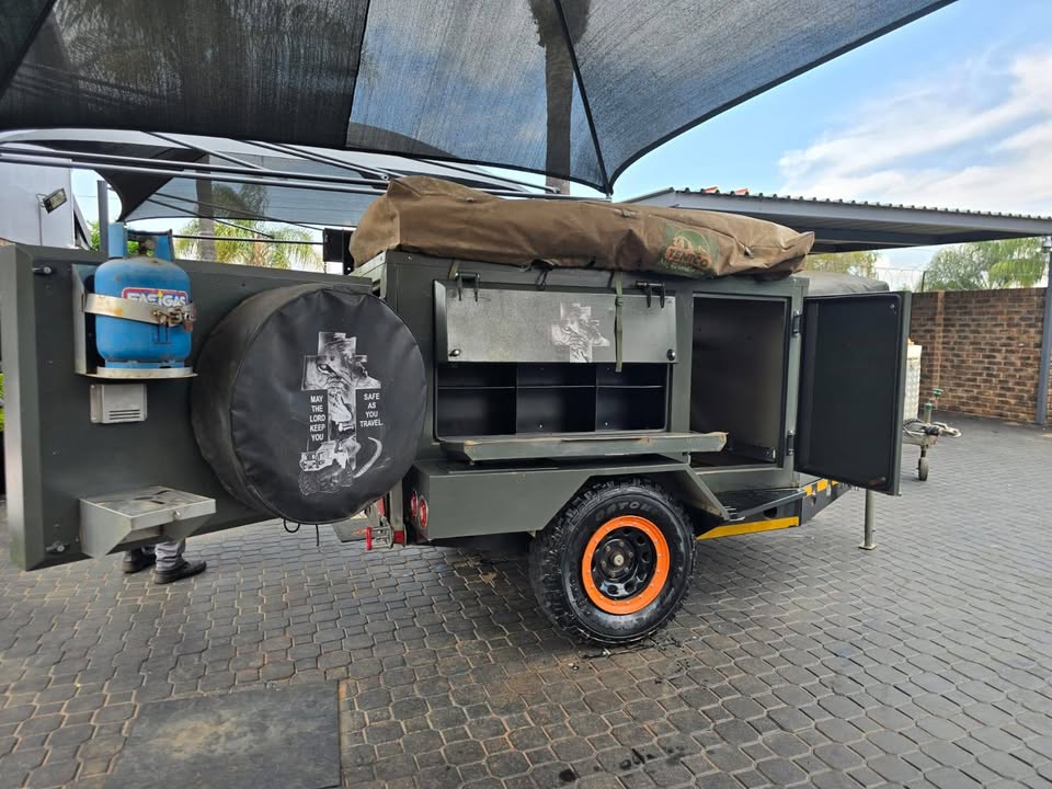 ‼️FULLY RIGGED 4X4 OFF-ROAD CAMPER‼️ *Large Rooftop tent +Awning included. *Eazy Clip Awning included. *National Luna fridge/freezer included. *Big Heavy duty Battery included. *Power dB box installed. *4x4 Rims + Tyre's. *Gas bottle included. *Very Nice Kitchen Compartment with Cutlery included. *Drawer system with 2 Plate gas stove and 2 drawers with extra cutlery. *2 Big drawers system at the back with lots of storage space. *Spare wheel included. *Ladder + Matress included. *Extra storage space on the right side ( Doors opening) *Watertank installed. *Washrack stand with plastic scotlle's installed. *Fishing rod holders installed. *4x4 Rugged trailer. *Paperwork up to date(dealerstocked) Beautifull 4x4 Fully Rigged off - Road Camping trailer. Don't miss out on this beauty‼️ 📍Pta Mountain View 📍 💰R74 900💰 📞/📞