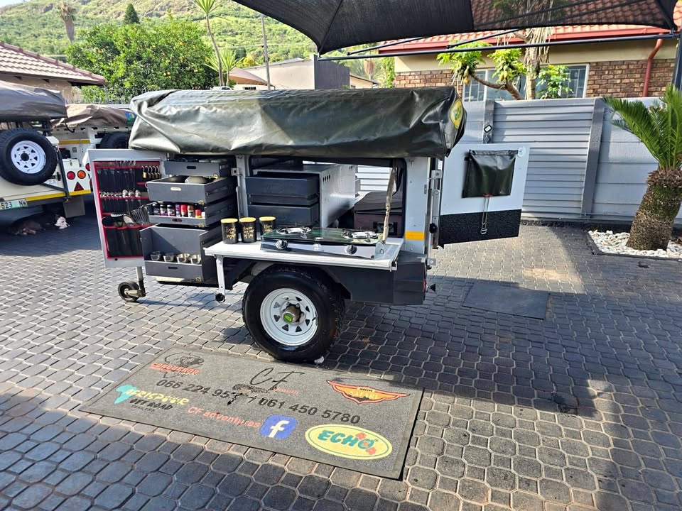 ‼️IMMACULATE 07 ECHO 3‼️ *Large Rooftop tent +Large Awning included. *2 x side walls included. *Fridge/freezer included. *Spectacular Kitchen Unit installed with Cutlery included. *2 Plate Gasstove included. *Camp table included as well as a steel table. *Drawer systems on both sides installed. *Braai Rooster included. *Tyres Still New. *Brand new Sparewheel included. *Jerrycan included. *Ladder + Matress included. *Powerpoints installed. An absolute pristine 07 Echo 3 Camper up for grabs, 2nd owner trailer, don't miss out on this beauty‼️ 📍Pta Mountain View📍 💰R65 500💰without fridge 💰R69 500💰with fridge 📞/📞