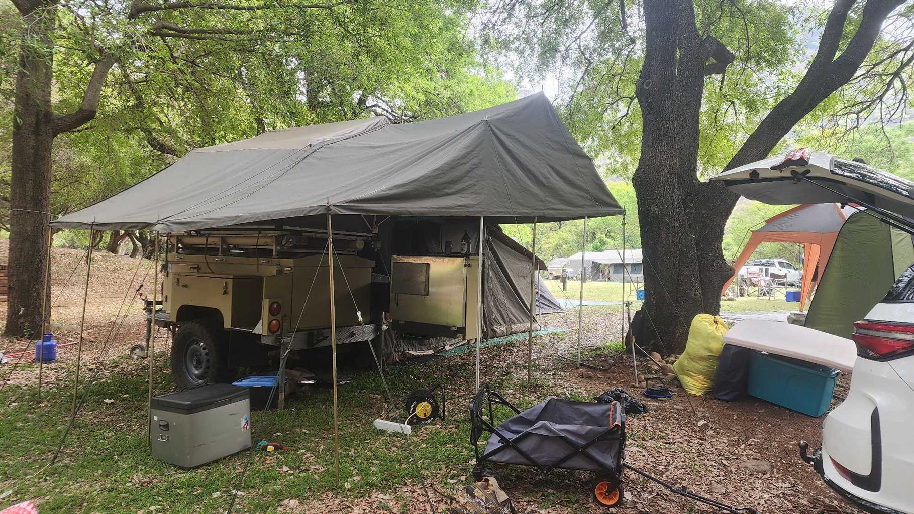 Tentco rooftop tent with awning and add a room tent. Sides to close the awnings off included.