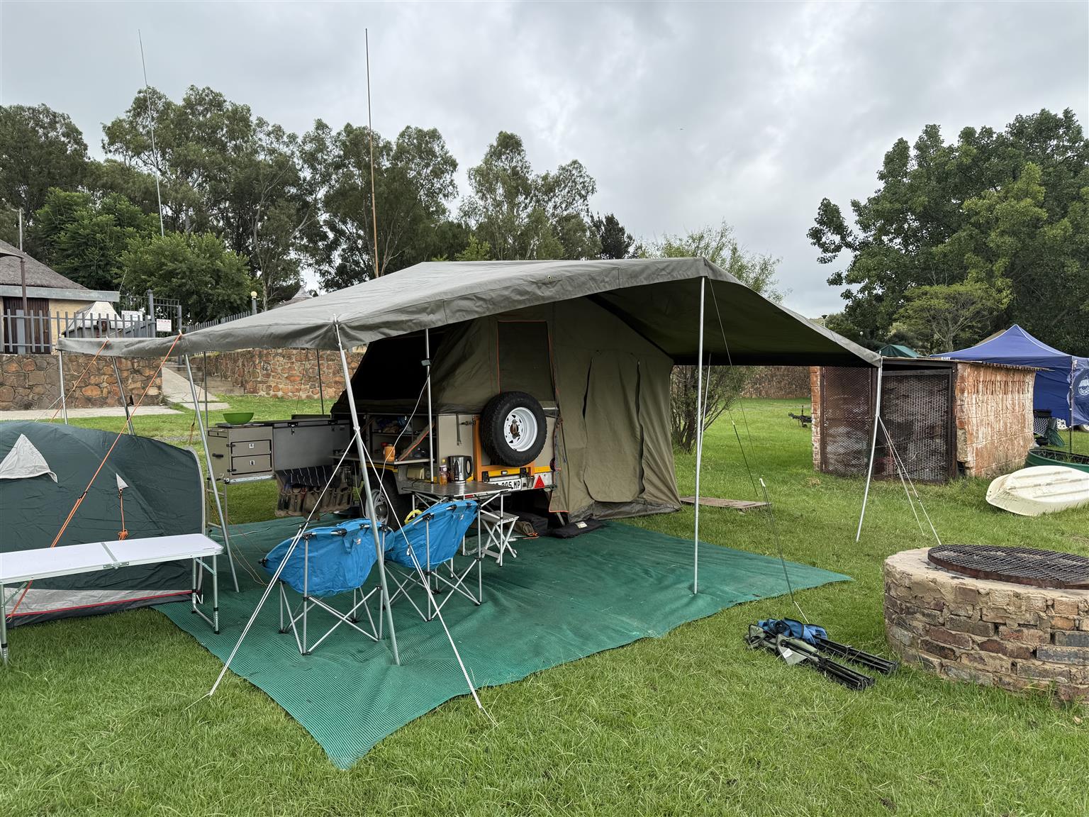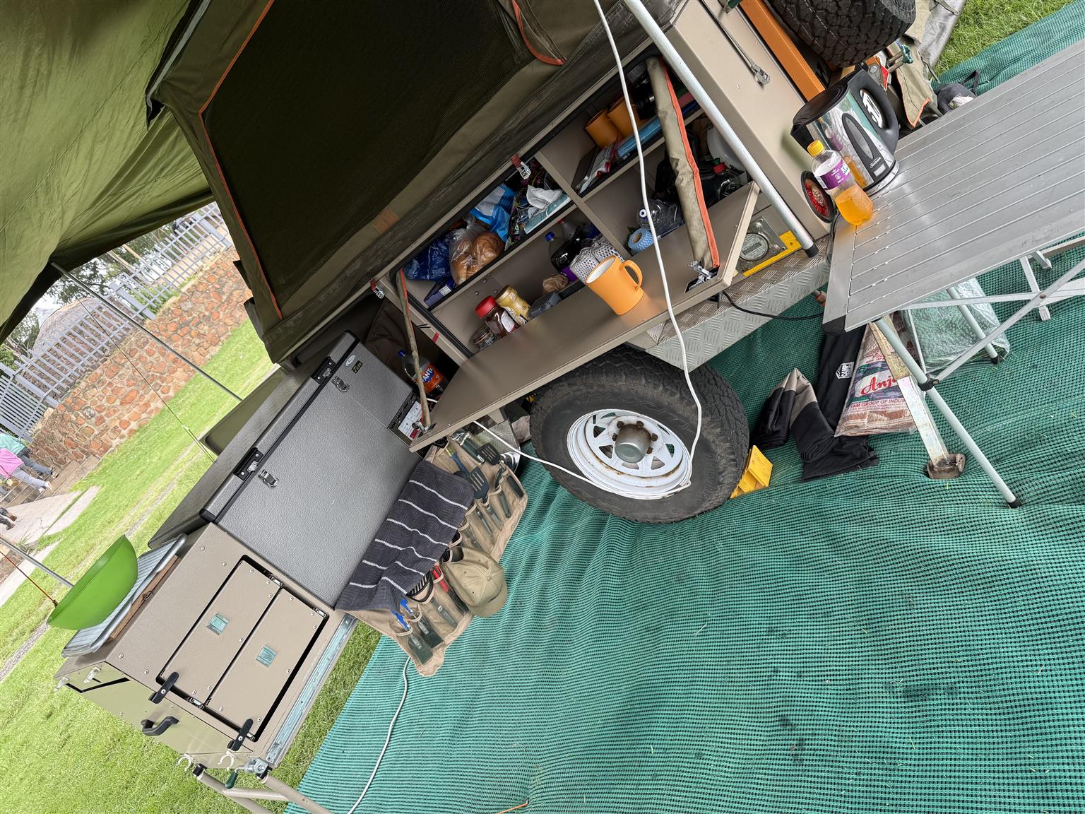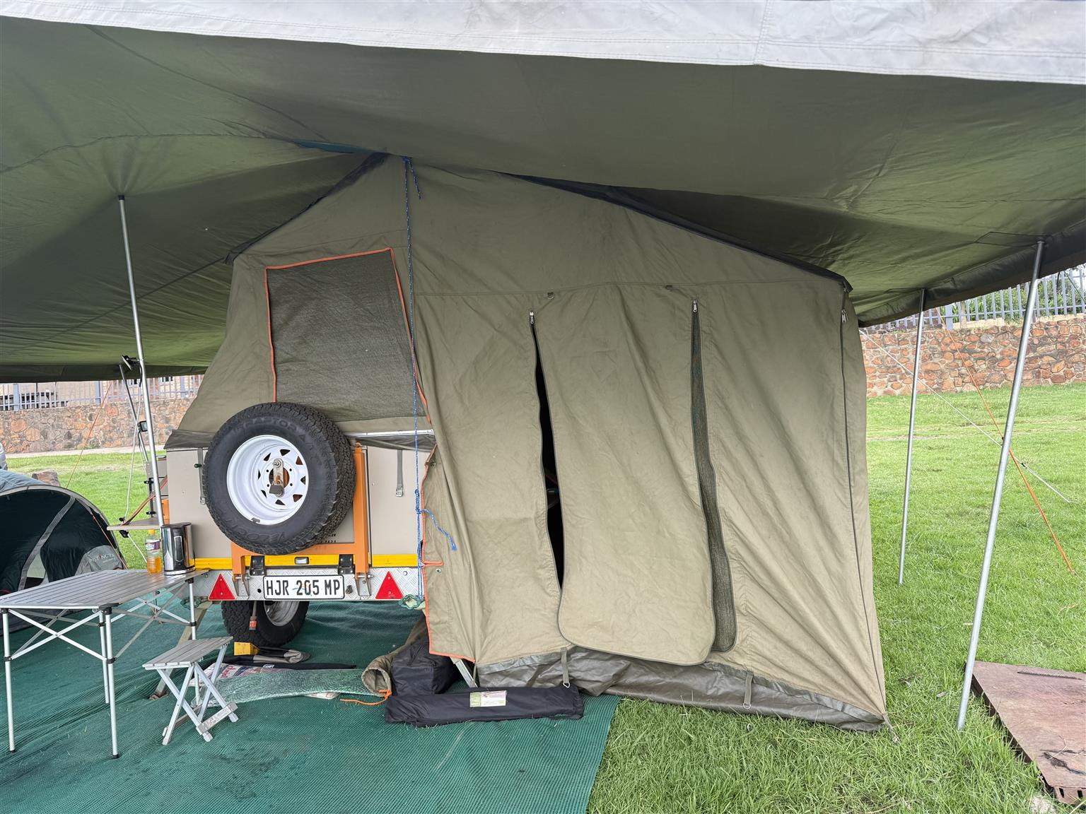 Offtrax Off Road Trailer, included: Solar Panel, Fridge and Freezer, extra 3m x 4m roof piece additional to 6m x 6m that is currently fitted, 500 l water tank, inverter and battery and Canvas Gazebo