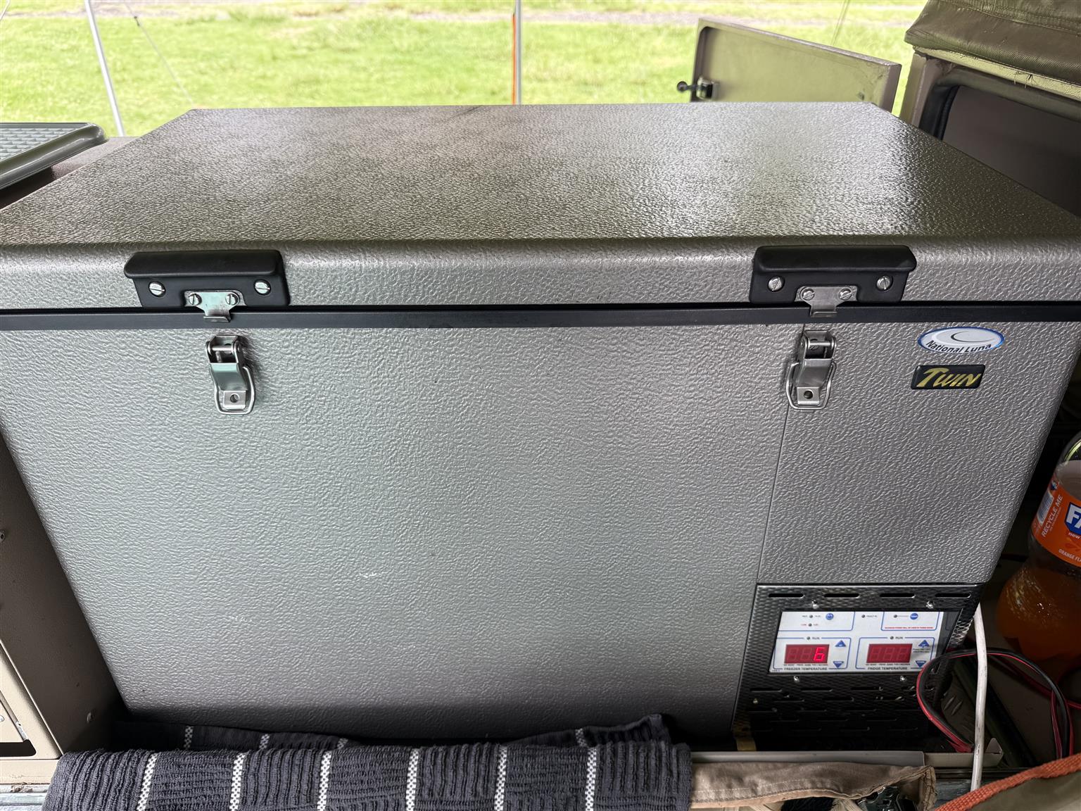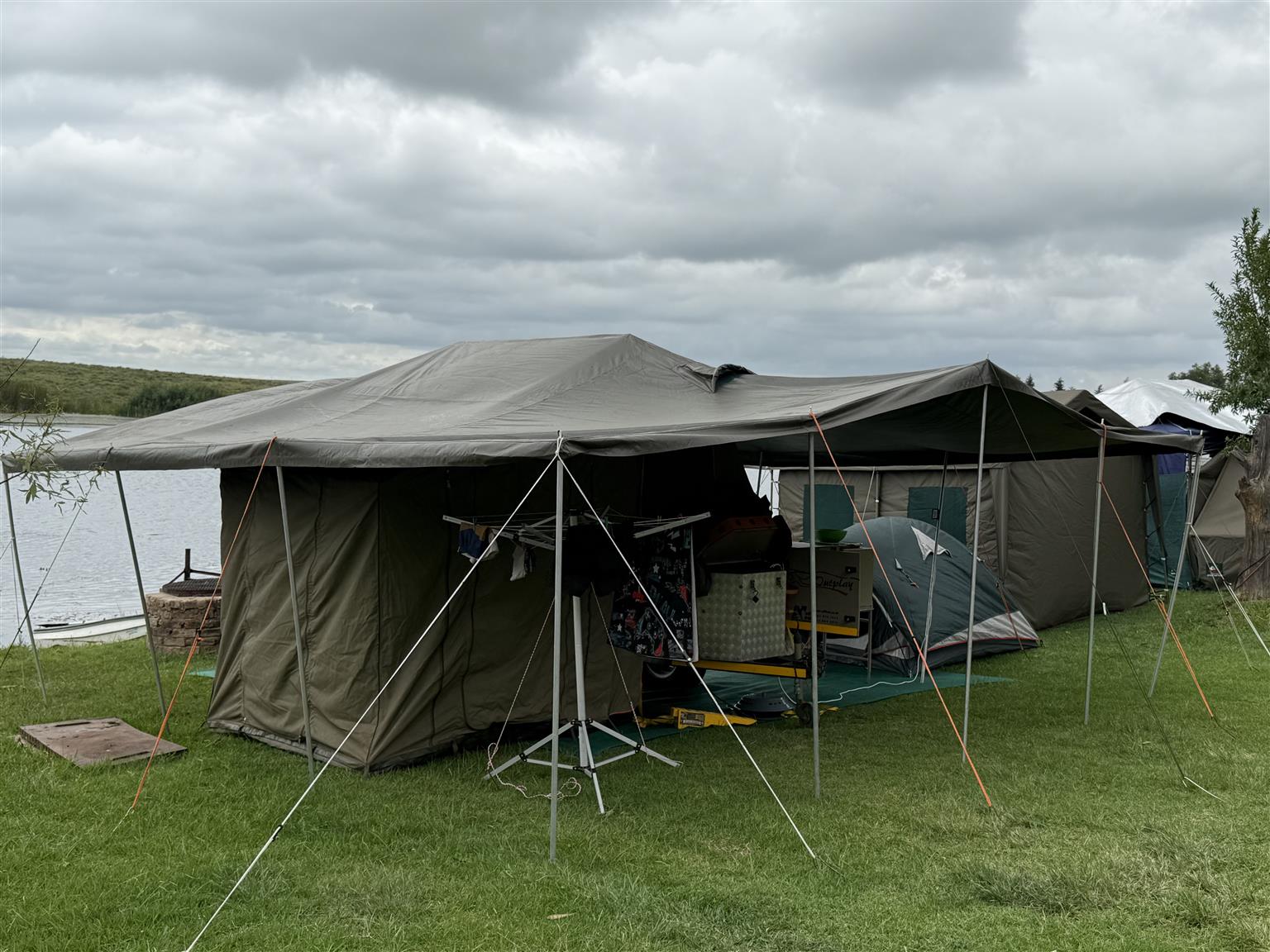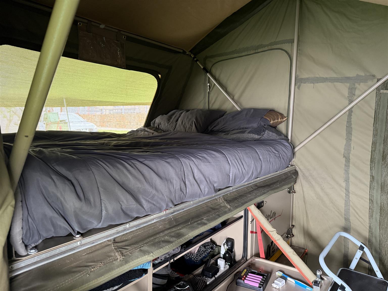 Offtrax Off Road Trailer, included: Solar Panel, Fridge and Freezer, extra 3m x 4m roof piece additional to 6m x 6m that is currently fitted, 500 l water tank, inverter and battery and Canvas Gazebo