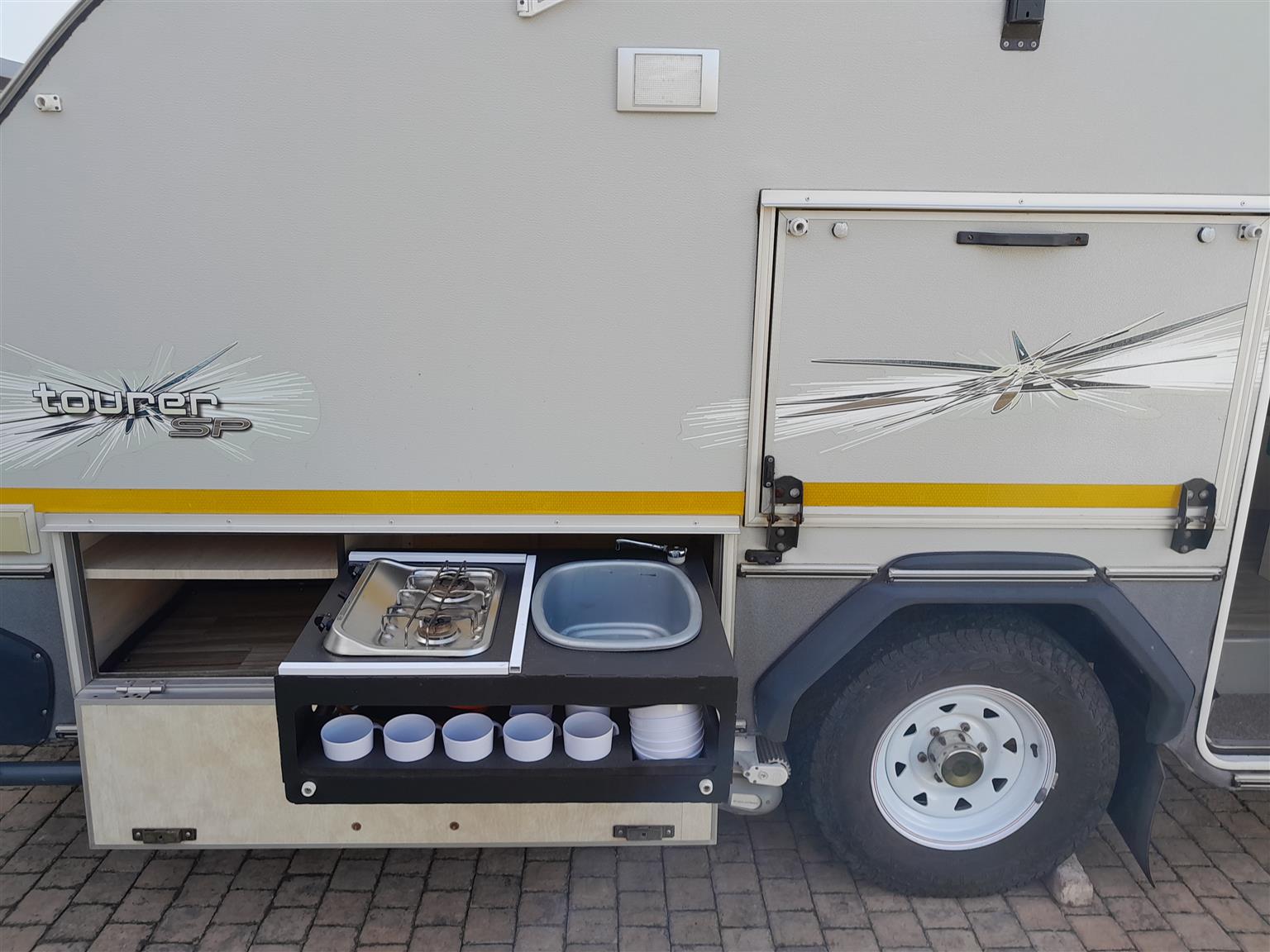 2015 Sprite Tourer SP with Ewiks movers. Full tent and rally tent. Two ground sheets, silver reflector sheet, storm net and travel blanket. National lunar fridge freezer and bar fridge. Sleeps 3 people. Gas bottle and stove with basin and 20 litre water tank. Tyres are good as new. Roadworthy and licensed until August 2024.