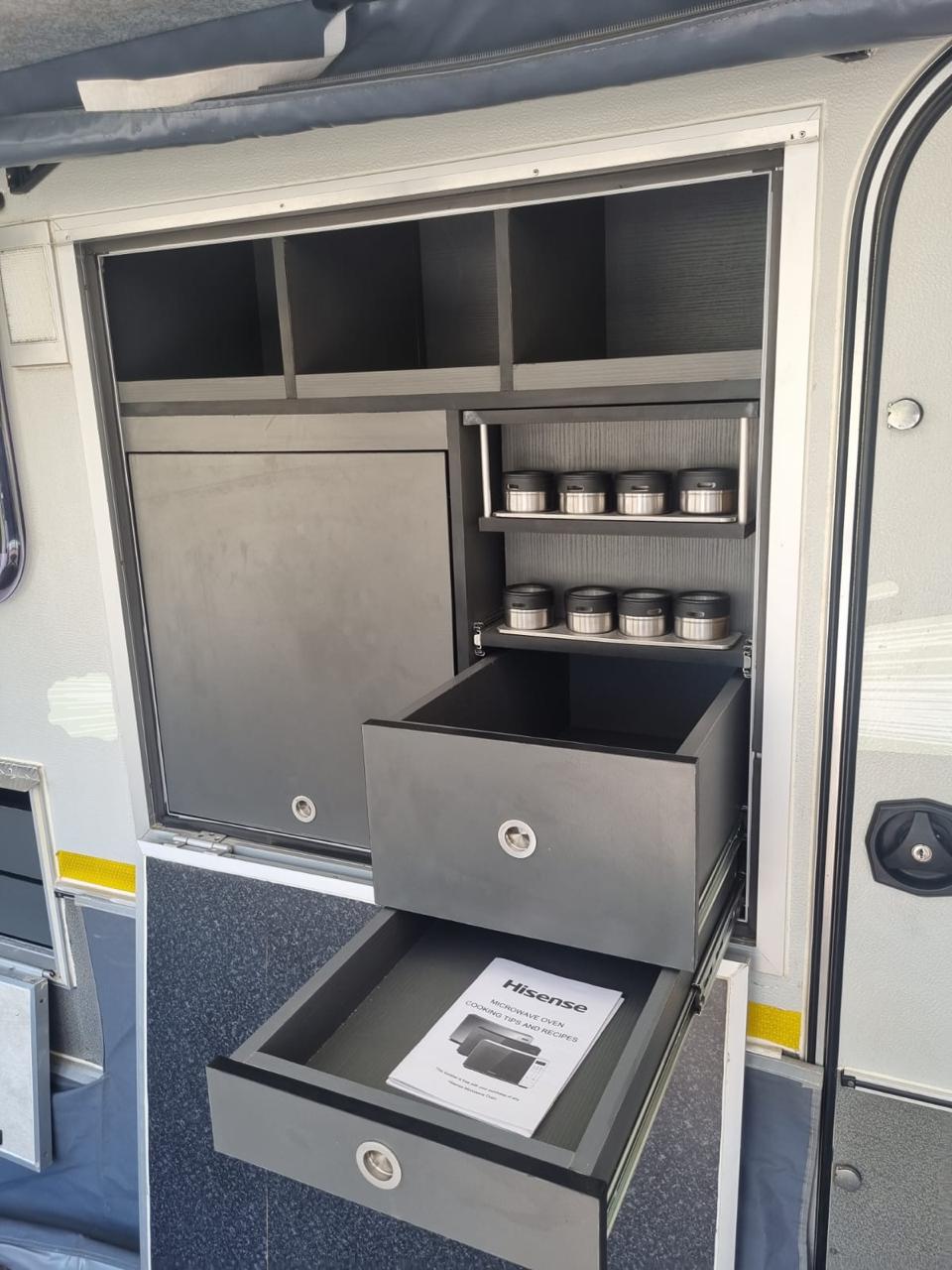The kitchen has been modified to perfection 👌snow master fridge freezer and microwave installed.