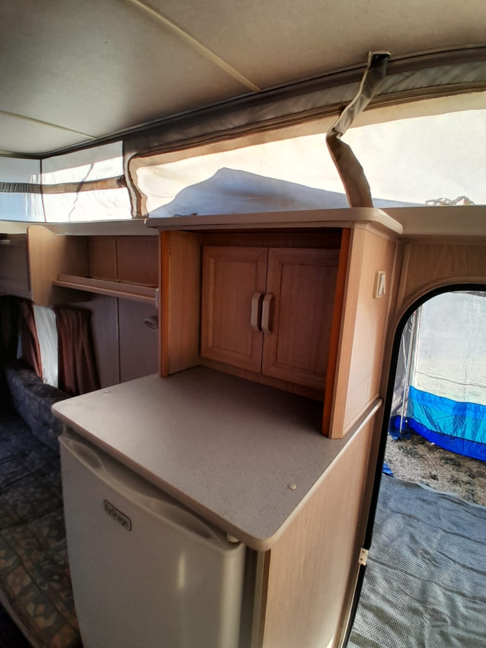 A 220v bar fridge and plenty packing space.spare wheel ,power cord,