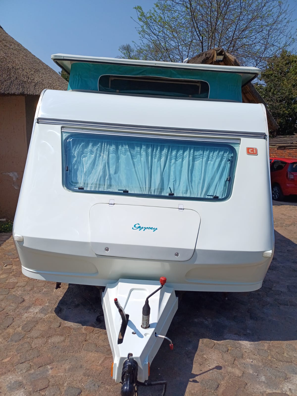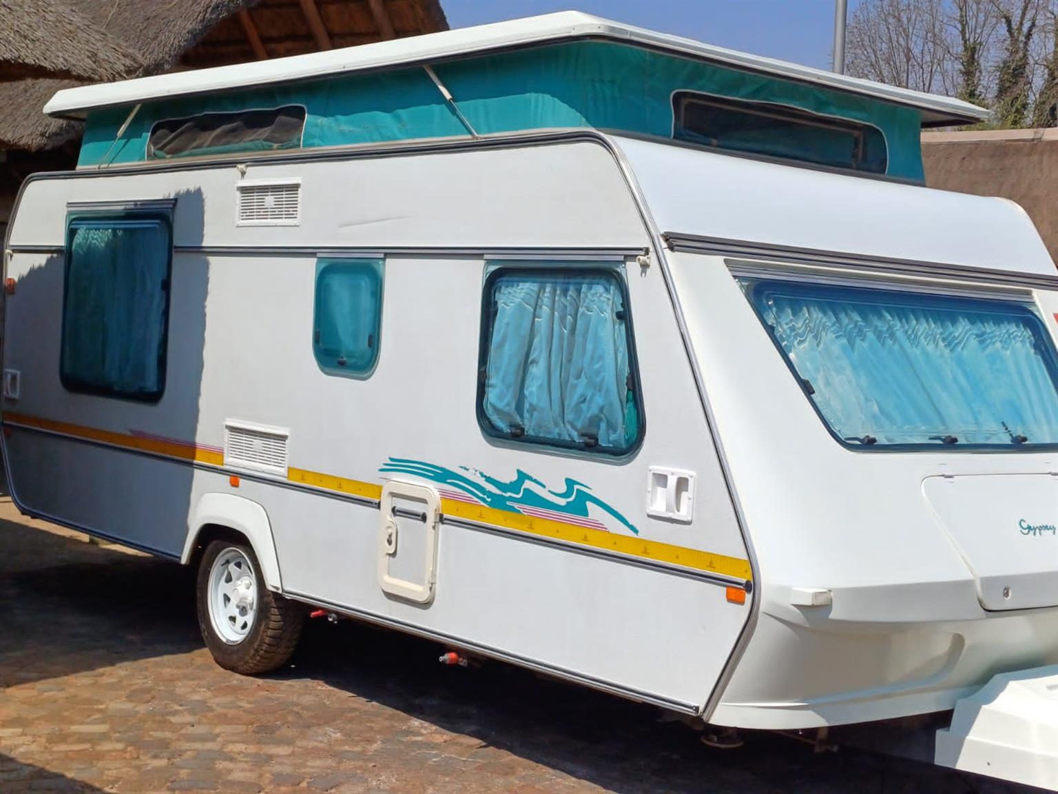 1996 Gypsey Royal caravan in excellent original condition ready for camping. Included is a full L-shaped tent as well as a rally tent with ground sheet and all necessary accessories for the tent work. Inside the caravan you have got a bathroom cubicle with a built-in serviceable toilet from the outside as well as a hand wash basin. Fitted in the kitchen area you have got the original gas stove and wash up basin which has never been used as well as a microwave and large original three-way fridge also included is a full set of original crockery. The caravan can accommodate a family of 4 comfortably sleeping arrangements consists of a double Island bed in the rear of the caravan as well as a additional double bed in the front that can convert into a dining area with collapsible dining table. This caravan is extremely spacious with fantastic cupboard space all standard accessories included contact me anytime to arrange viewing in benoni *072*775*3523*