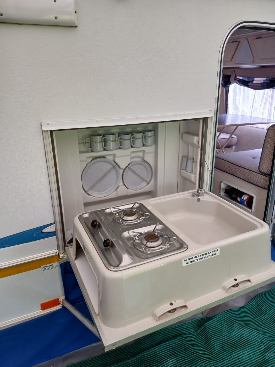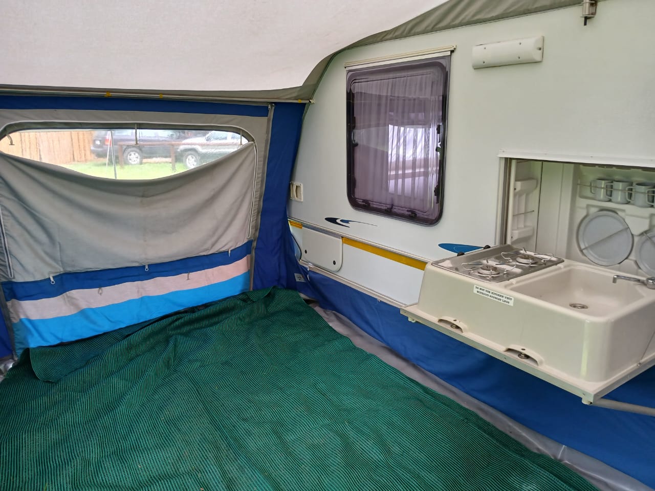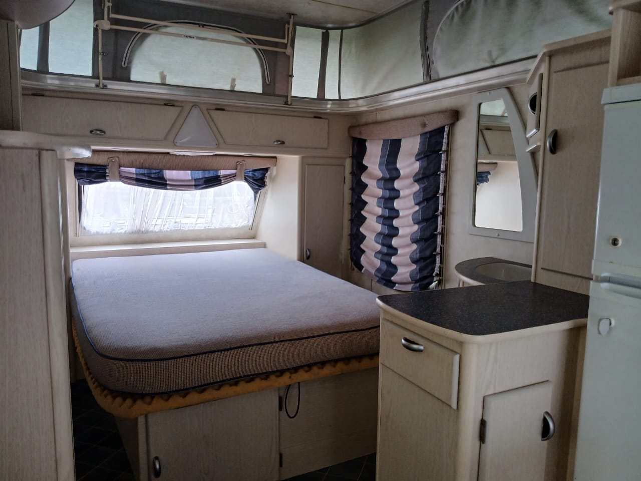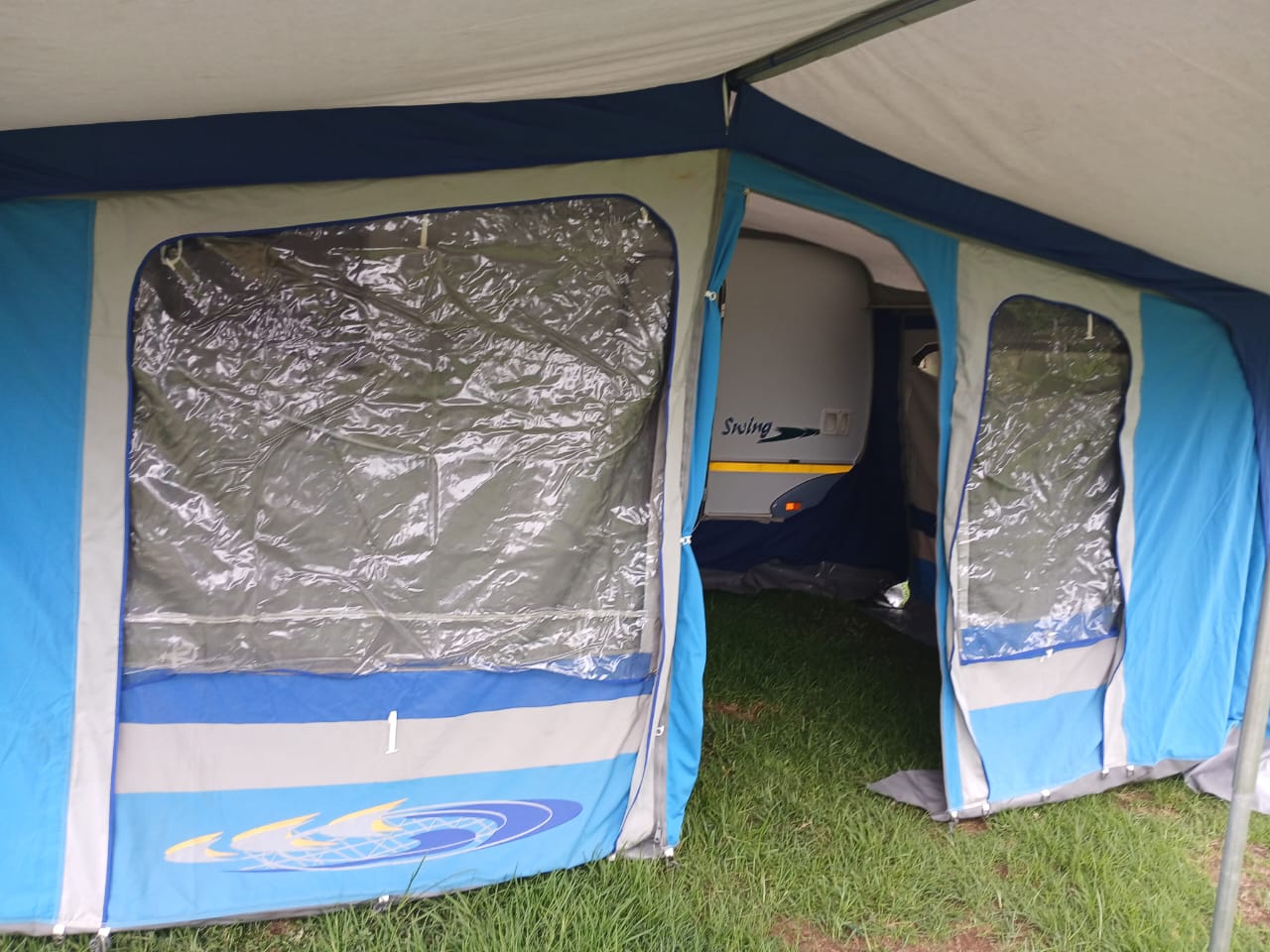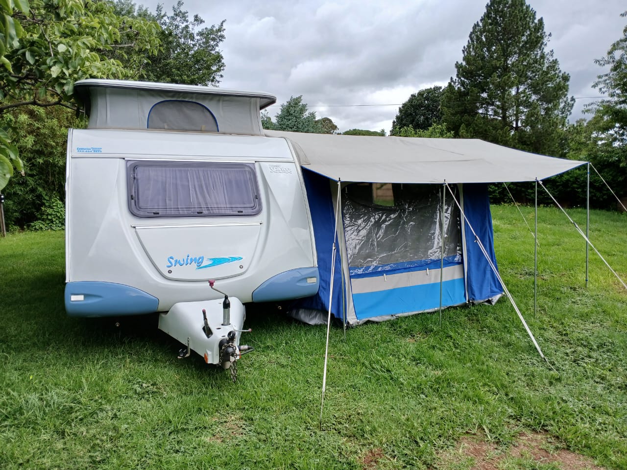 2004 Sprite swing caravan in excellent condition. Complete outside kitchen with fold down gas stove and wash up Basin as well as compartments for all your cutlery and crockery which is included. The caravan comes complete with a full tent as well as a rally tent with ground sheet. Inside you have got a large double door fridge freezer fitted the caravan has got a double Island bed in the front as well as a additional 3/4 of bed in the rear that can converts into a dining area with collapsible table. All standard accessories included contact me anytime to arrange viewing in benoni *072*775*3523*