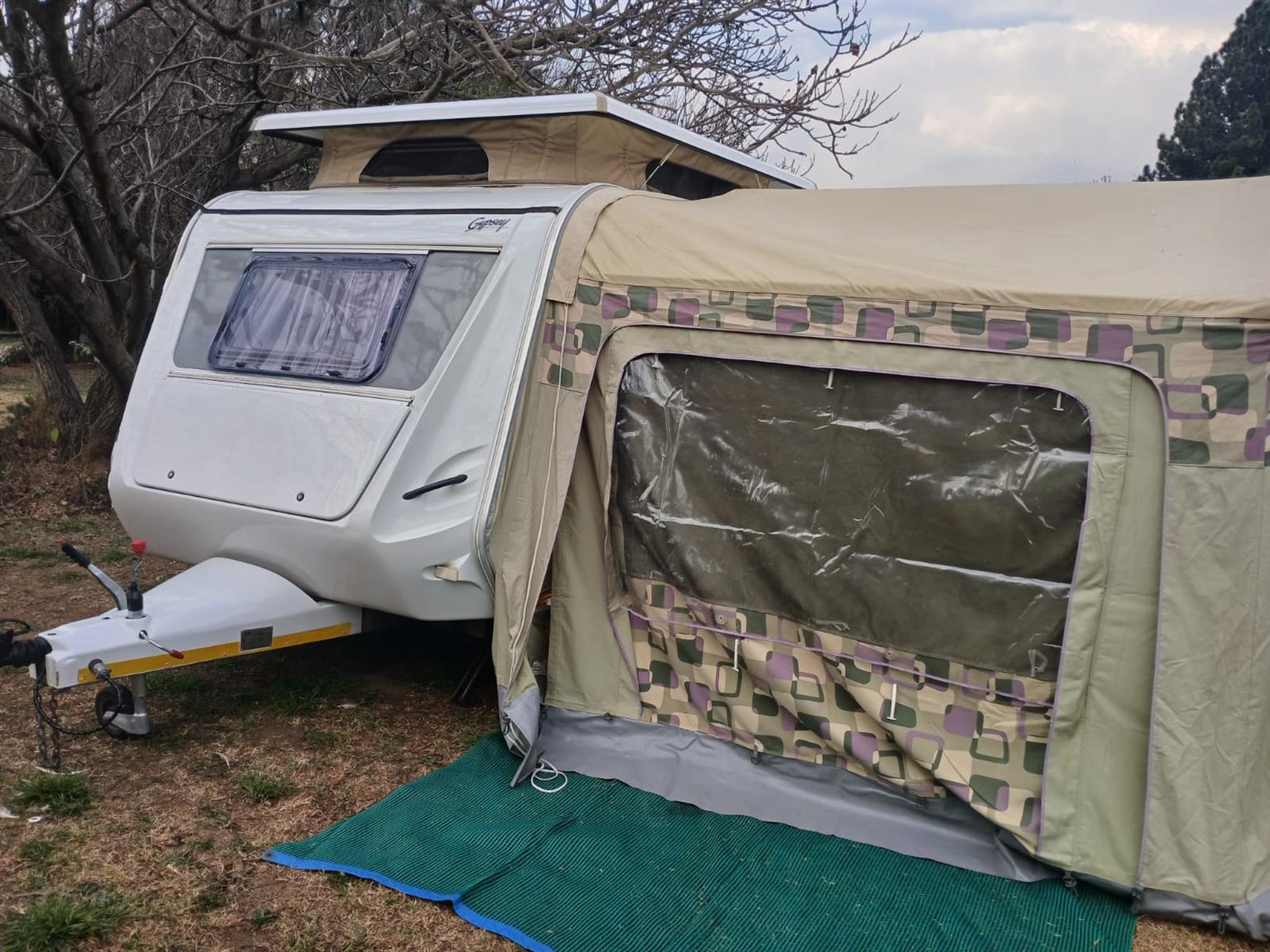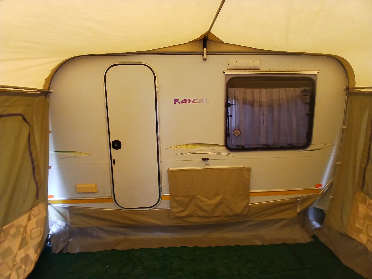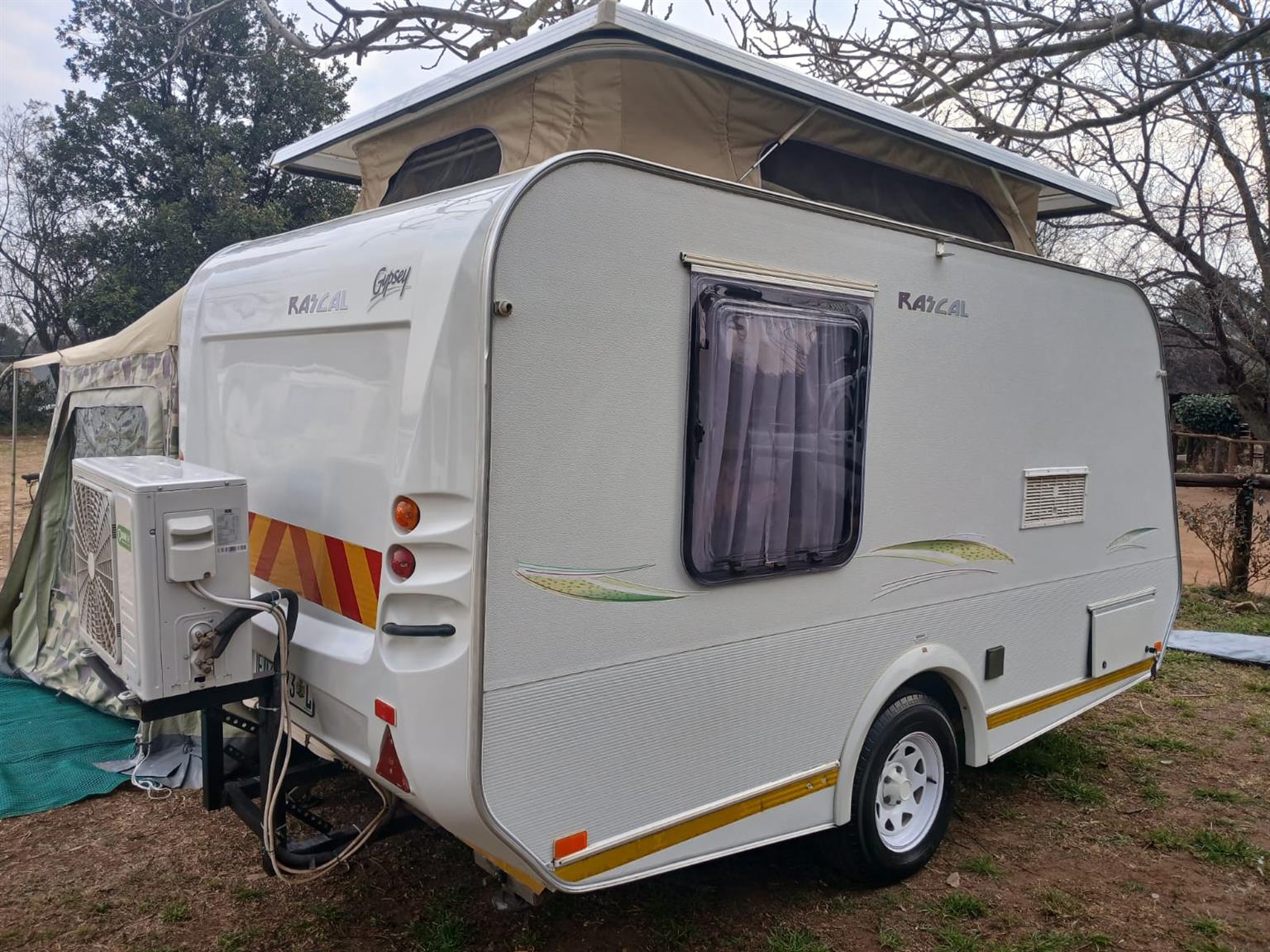 Gypsey Rascal caravan in beautiful condition this is a lightweight and easy to handle caravan ready to go camping *072*775*3523* the caravan has got a split unit aircon installed included is also the full tent in excellent condition with ground sheets and all necessary poles,ropes and pegs for the tent work. Inside the caravan you have got the original layout with everything in excellent condition fitted in the kitchen area you have got a electric bar fridge fitted as well as a microwave the original gas stove and wash up Basin are still in place but have never been used the caravan has got a full set of crockery included as well as a aftermarket alarm system installed with senses on all windows and main door. The caravan has got a Island bed in the rear which is on a sliding rail system so can also be positioned in the corner as well as a additional 3/4 bed in the front which can convert into a seating area with collapsible dining table. All standard accessories included finance available contact me anytime to arrange viewing in benoni