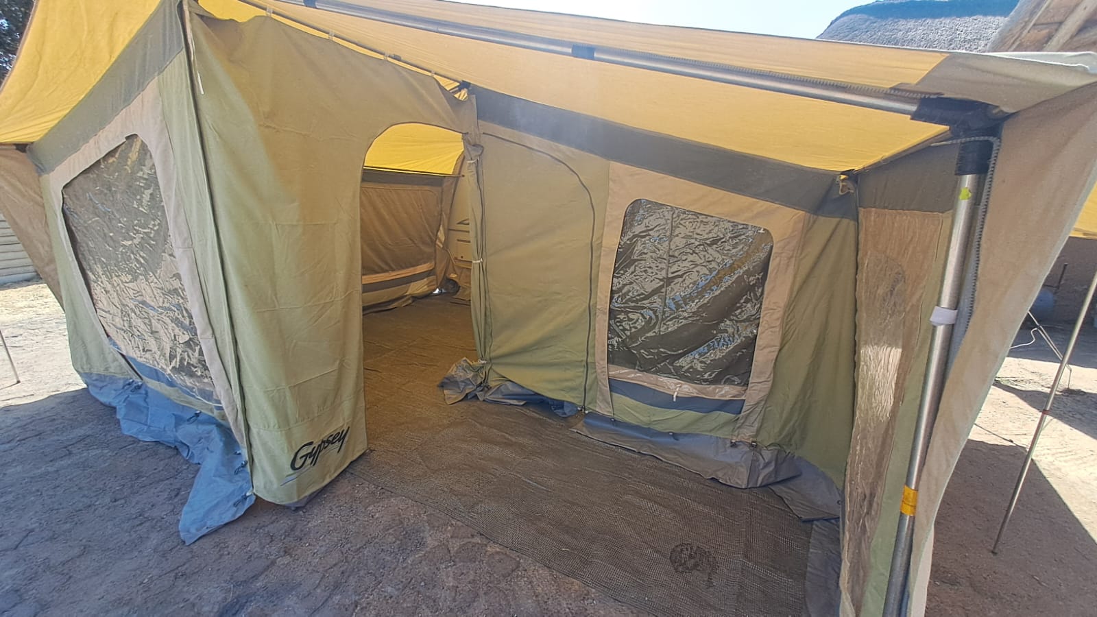 2009 gypsy Romany caravan in excellent condition ready for holiday. The caravan comes complete and ready to camp with a beautiful full modular tent in excellent condition with ground sheet and all necessary poles,ropes and pegs for the tentwork. On the inside of the caravan you have got a extremely practical and modern layout with fantastic cupboard space. Fitted in the kitchen area you have got the original gas stove and wash up Basin which has never been used, also fitted is a large double door fridge freezer and microwave. The caravan can accommodate a family of 4 comfortably, sleeping arrangements consists of a double Island bed in the front with a additional vanity Basin as well as a additional double bed in the rear that can convert into a seating area with dining table. There is nothing to be spent on this caravan it is ready for the next trip just pack it and go all standard accessories included such as spare wheel,gass bottle.water bottel with water pump, electric extension cord,jack and wheel spaner and fire extinguisher. License fully up-to-date and paperwork on hand contact me anytime to arrange viewing in benoni or make contact for additional pictures and information