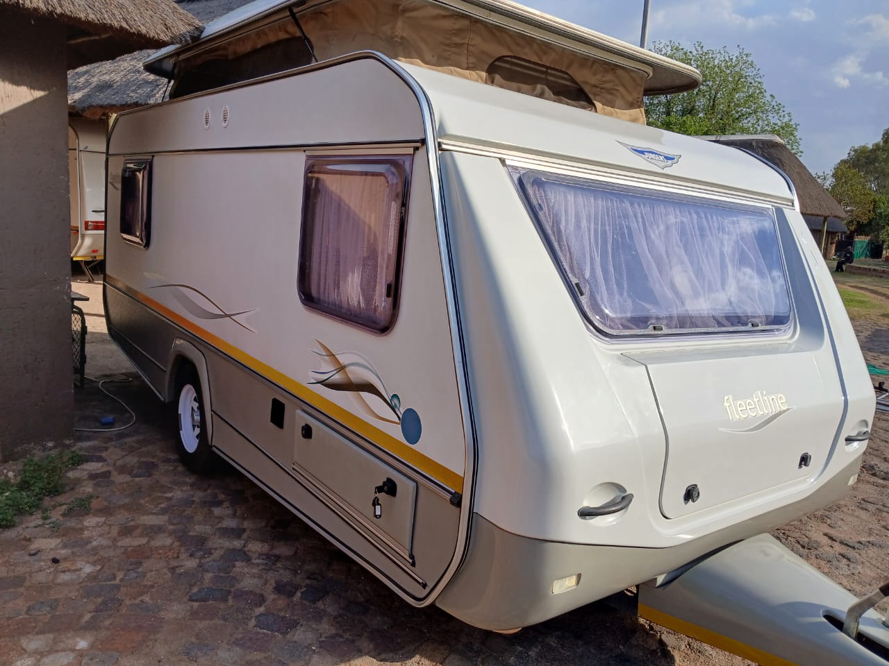 Beautiful full house 2012 jurgens fleetline caravan ready for holiday. Included is a full modular tent with extra side panels allowing you to have a double tent as well as a ground sheets and all necessary accessories for the tent work. Remote controlled Ewiks caravan movers fitted making the caravan A Dream to move around. Inside the caravan you have got a split unit aircon installed. Fitted in the kitchen area there is a gas stove and wash up Basin which has never been used as well as a large double door fridge freezer and microwave also included is a full set of original jurgens crockery. The caravan can accommodate a family of 4 comfortably it has got a double Island bed in the rear as well as a additional double bed in the front that can convert into a dining area with collapsible table. Finance available and caravan trade ins welcome *072*775*3523*
