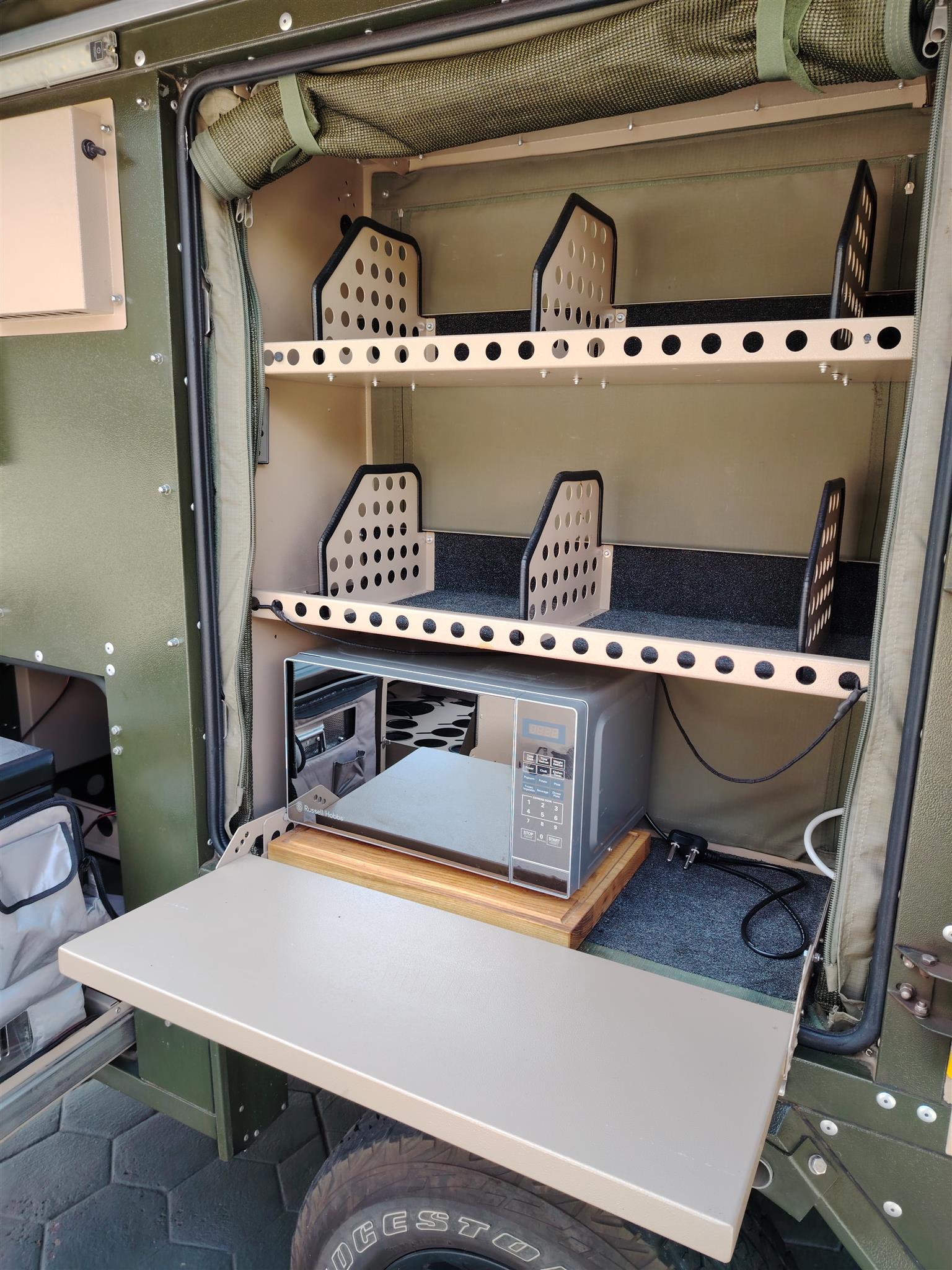 Custom Leisure Tech Awning with side panels (Awning has brackets which can adjust up and down to easily fit in a garage)