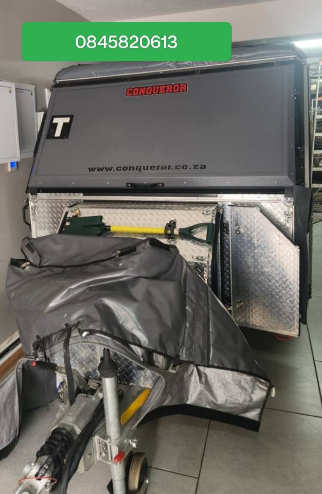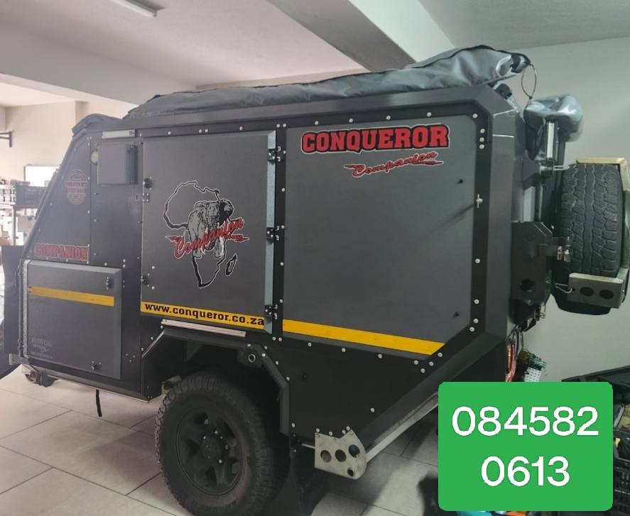 2021 Conqueror Companion Platinum Off-road Caravan - 4 Sleeper - Full L shape large tent - New 90 l Fridge/freezer - Water tank with pressure pump - Gas Geyser - Gas bottle...(Large) - Jerry cans - Wash basin with hot and cold water tap - 2-plate gas stove - Seperate Shower cubicle - Shower water connection and piping - Charging system with two new Lithium batteries - Solar charger (Victron) - Solar ready (plug in solar panel - not included) - LED lights inside and outside - Hella plugs - 4 x Box drawers and many more..... Very popular and durable off road capable caravan. Only used 4 times since new and stored in garage. Currently available in Nelspruit for viewing. Viewing can also be arranged in Centurion within two weeks. Finance, registration and countrywide delivery (additional costs) available. Contact Pieter on 0845820613view more (Call or whatsup) 🏆🏆 Only R399 900...