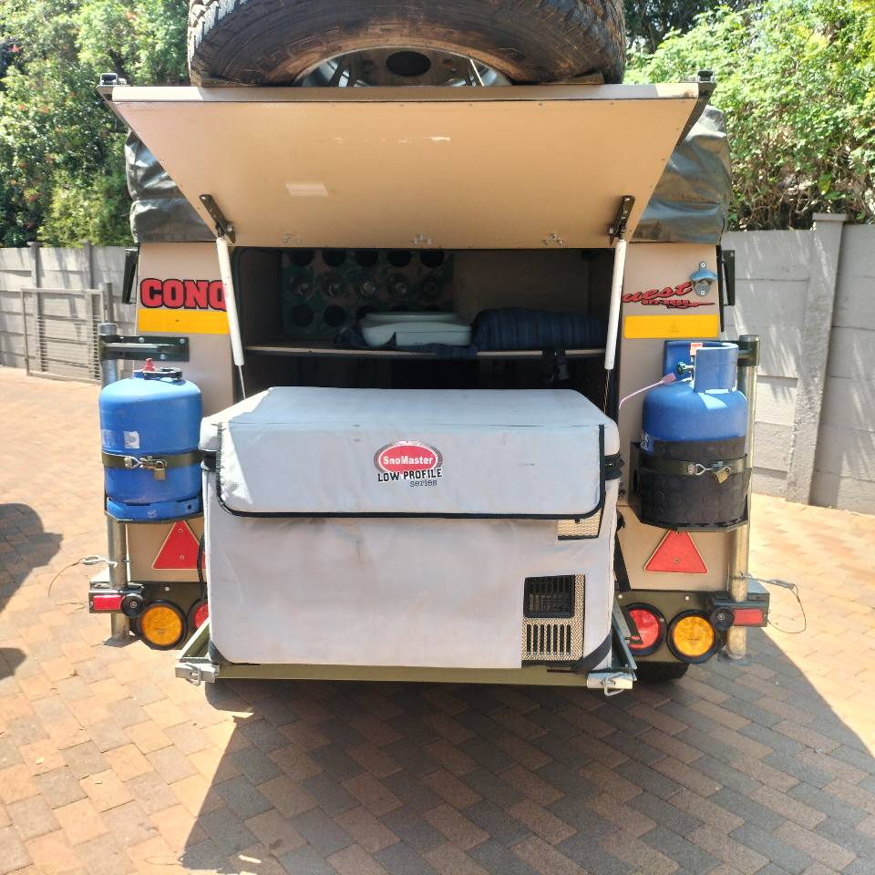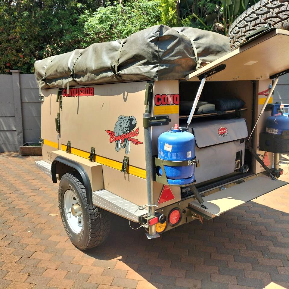 🏆🏆 Conquerer Conquest in immaculate condition. Ideal compact 4x4 Trailer. * Snowmaster Fridge/ Freezer on slider * Extendable large double bed with mattress. * 2 x Water tanks with taps at back * 2 x Jerry cans with lockable holders * Gas stove * Full around awning with all poles ,ropes and pegs * 2 x Gas bottles * Vectron charger, power supply with 2 x batteries * 2 x additional fans All documentation and license in order. Sparewheel & RWC included. Registration / Finance / Delivery available (add costs) Call or whatsup [hidden information]. Located in Centurion. 🏆 R 92 900. ...