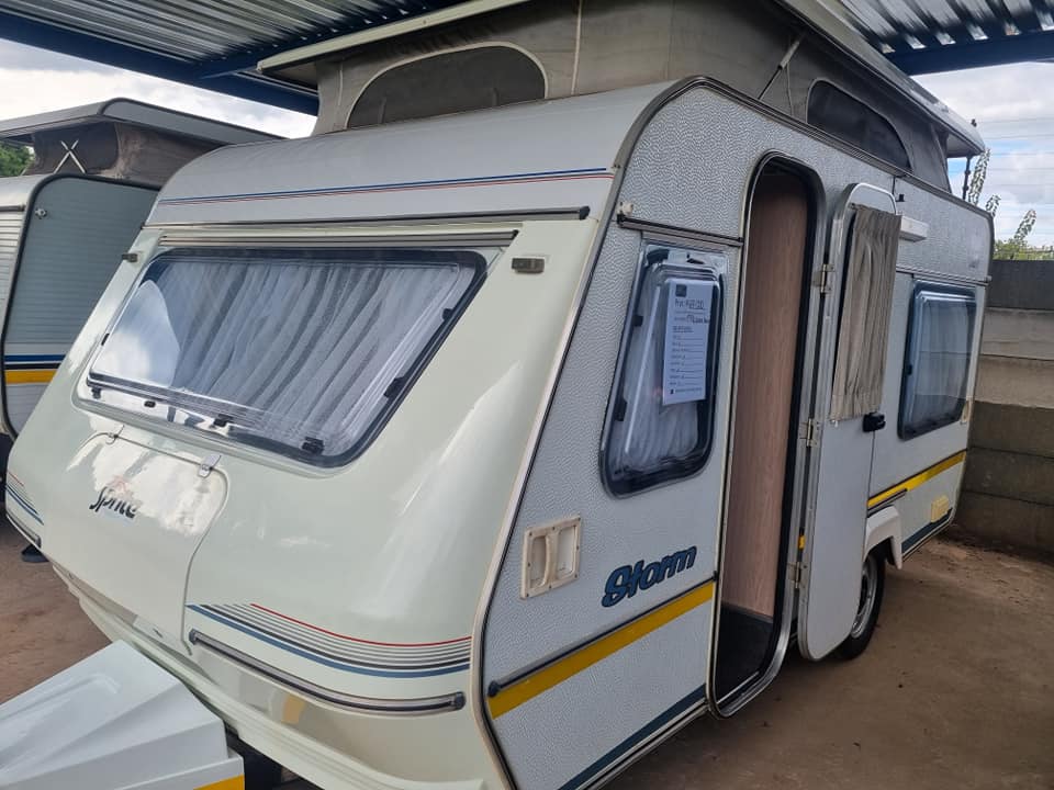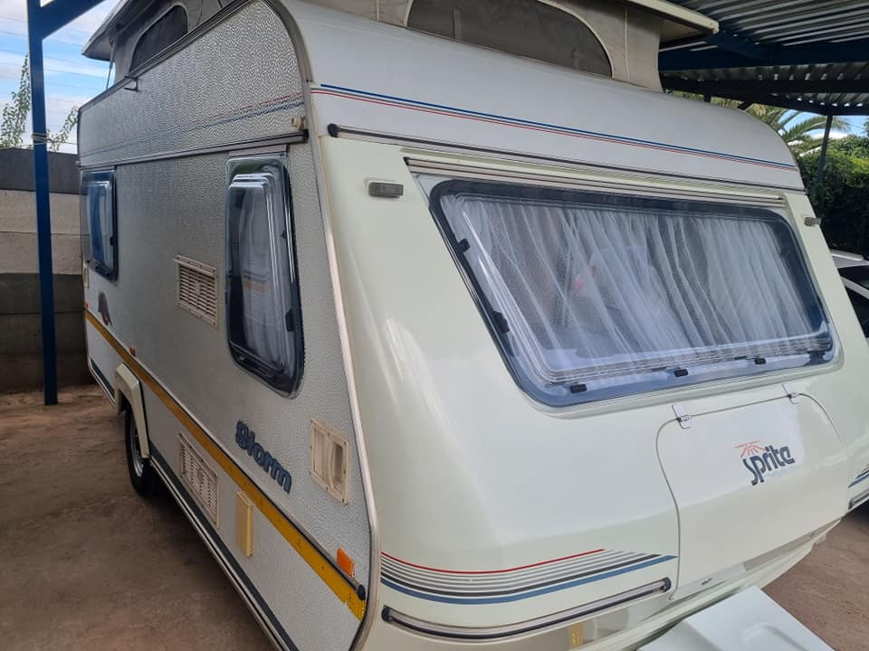1994 SPRITE STORM DERIK KRUGERSDORP PAPIERE OP DATUM EN BESKIKBAAR VOL TENT RALLY TENT MET KANTE GRONDSEIL ENKEL BED VOOR KANT DUBBEL BED AGTER YSKAS MIKROGOLF WASBAK BAIE MOOI SEROUND BY DIE DAK BAIE PAKPLEK KARAVANE IS BAIE SKOON EN NETJIES GESEEL GEDIENS WEEG 740KG 22OV KRAG BUITE DERIK
