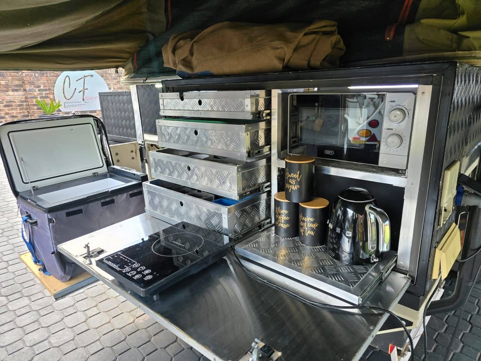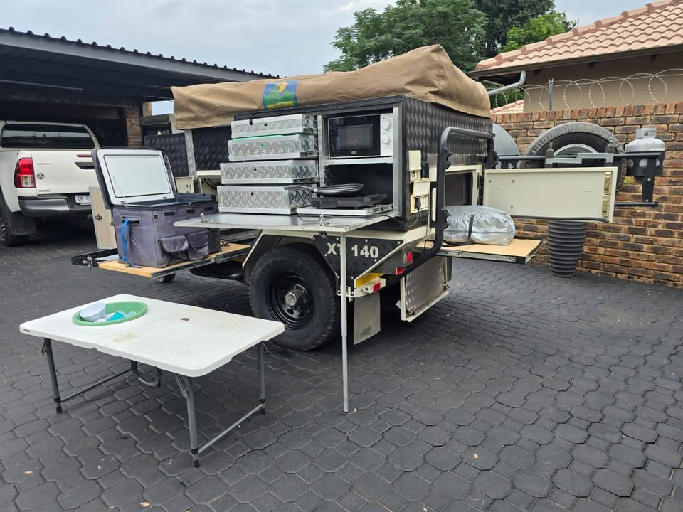 ‼️Fully Rigged 2011 Jurgens xt 140‼️ *Full Howling moon tent + all side panels included.(Wrap Around tent) *40L fridge/greezer included. *Gas bottles included x2 *Gas geyser with shower pipe's included & Tabs installed. *Drawer system in front for fridge. *Solar Controller installed , just need solar panel. *12V Intelligent pilse Repair battery charger. *National Luna intelligent solenoide included. *Water pump installed. *Defy Microwave included. *Stainless steel built in water tanks *C-Tek battery charger included. *Brand new battery included. *solar ready (panel not included) *Aluminium kitchen drawers. *LED lights around tent, *Yuppie chef included,(morphy Richards stove) *Small jerry can included. *Rear drawer system installed. *Custom boxes around trailer for plenty storage space. *Paperwork in order,And serviced. Beautifull 2011 Full House Jurgens xt 140 up for grabs‼️Dont miss out on this Beauty‼️ 📍Pta Mountain View📍 💰R87 500💰 📞/📞