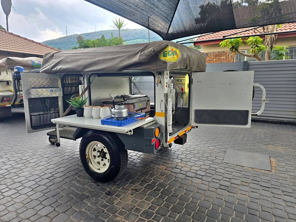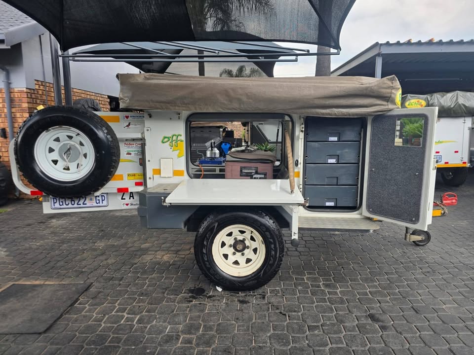 ‼️BARGAIN 03 ECHO 3‼️ *Large Rooftop tent +Large Awning included. *All Side panels included. *2 x Battery's included. *Power DB box installed. *Kitchen Compartment with Cutlery included. *Led internal + External lights installed. *Steel table included. *Drawer system on the right side. *Echo battery charger installed. *Victron Solar charge Controller installed. *Solar ready. *Nose cone installed. *Watertank + Waterpump installed. *Sparewheel included. *Ladder +Matress included. *Jerrycan included. *Gasstove included. Beautifull 2003 Echo 3 Camper up for grabs, don't miss out on this beauty‼️ 📍Pta Mountain View 📍 💰R55 500💰 📞[hidden information]/[hidden information]📞