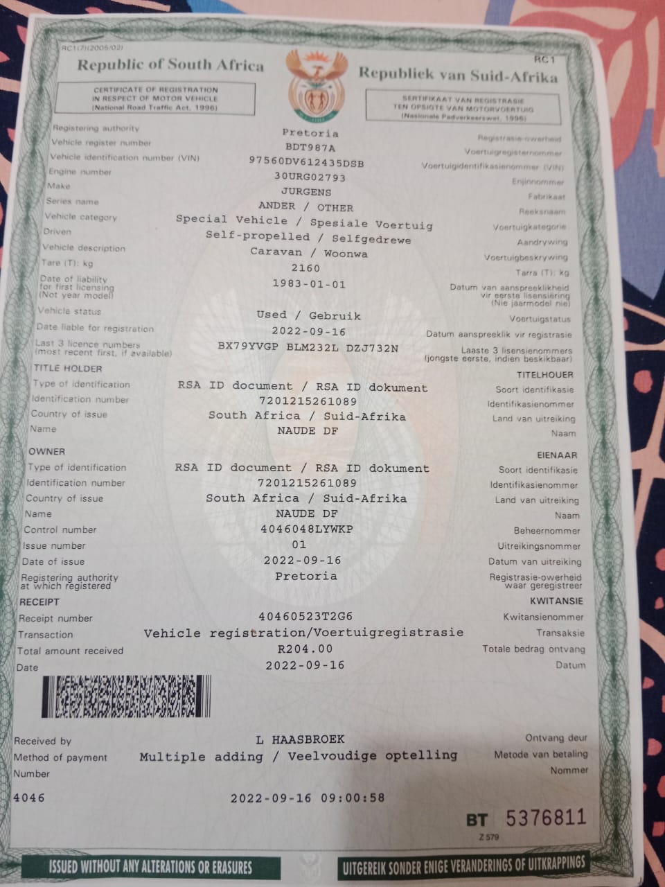 RV Model 1982. More details: