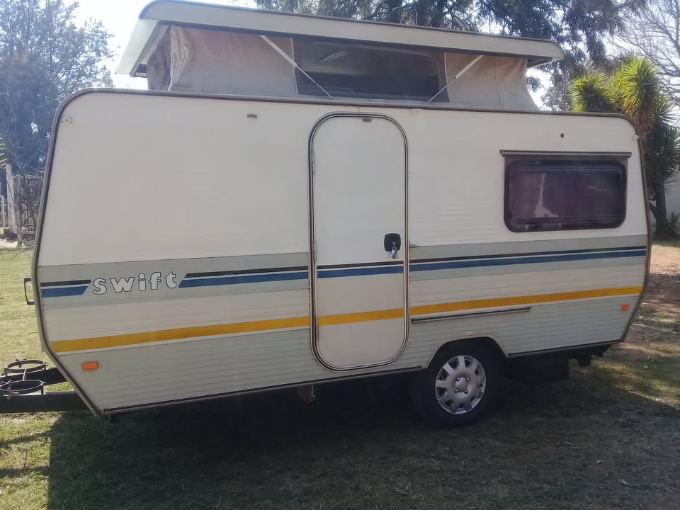 Sprite Swift 1983 Puik kondisie Slaap 4 Wasbak Yskas Rally met kante (Soos nuut) Grond seil (Soos nuut) TARE 590 KG GVM 750 KG Karavaan kan met gewone bestuurs lesensie gesleep word. Prys: R 32 900-00 Kontak: Hendrie 079 465 0522view more