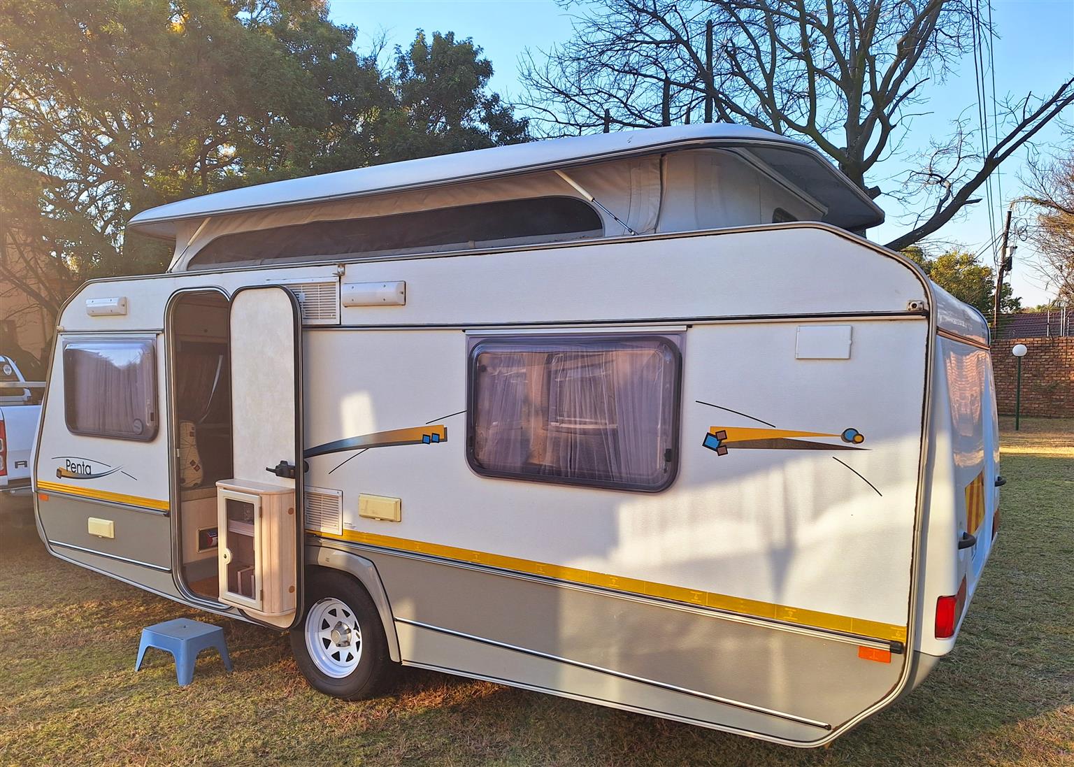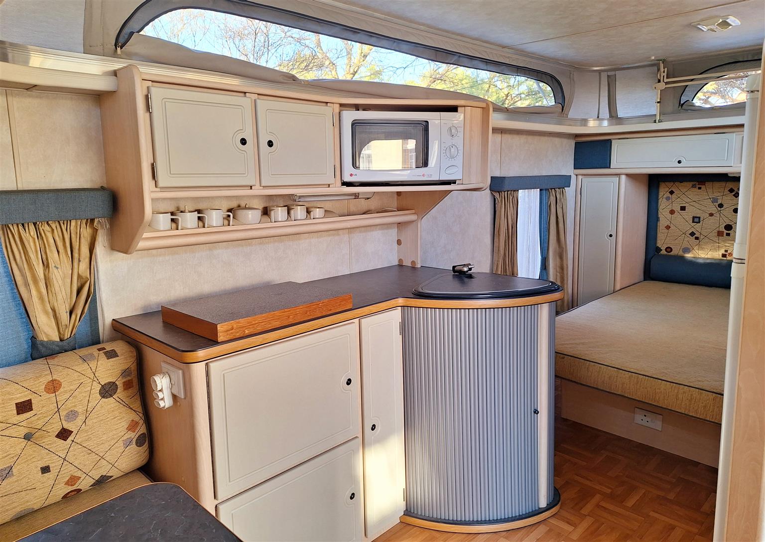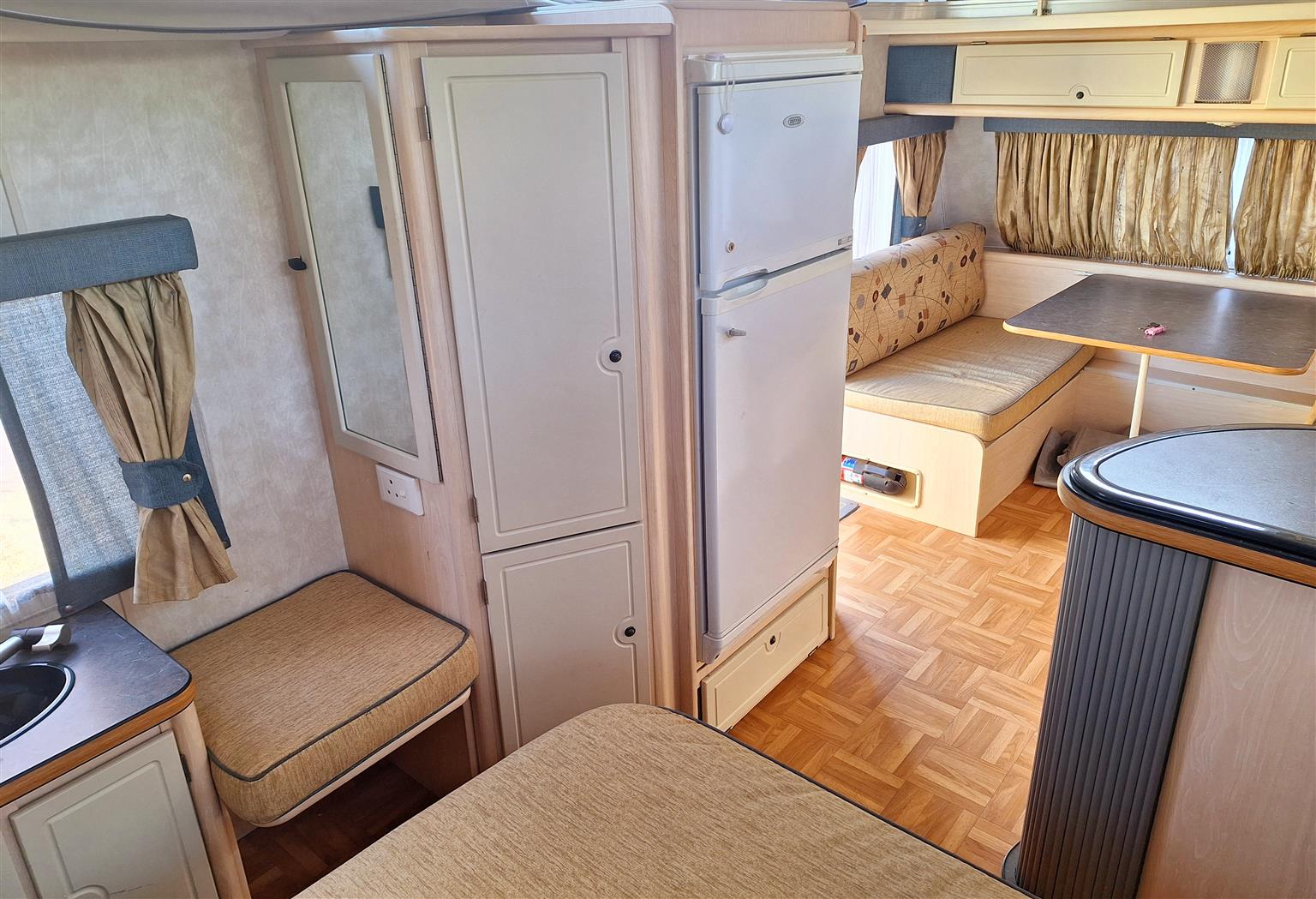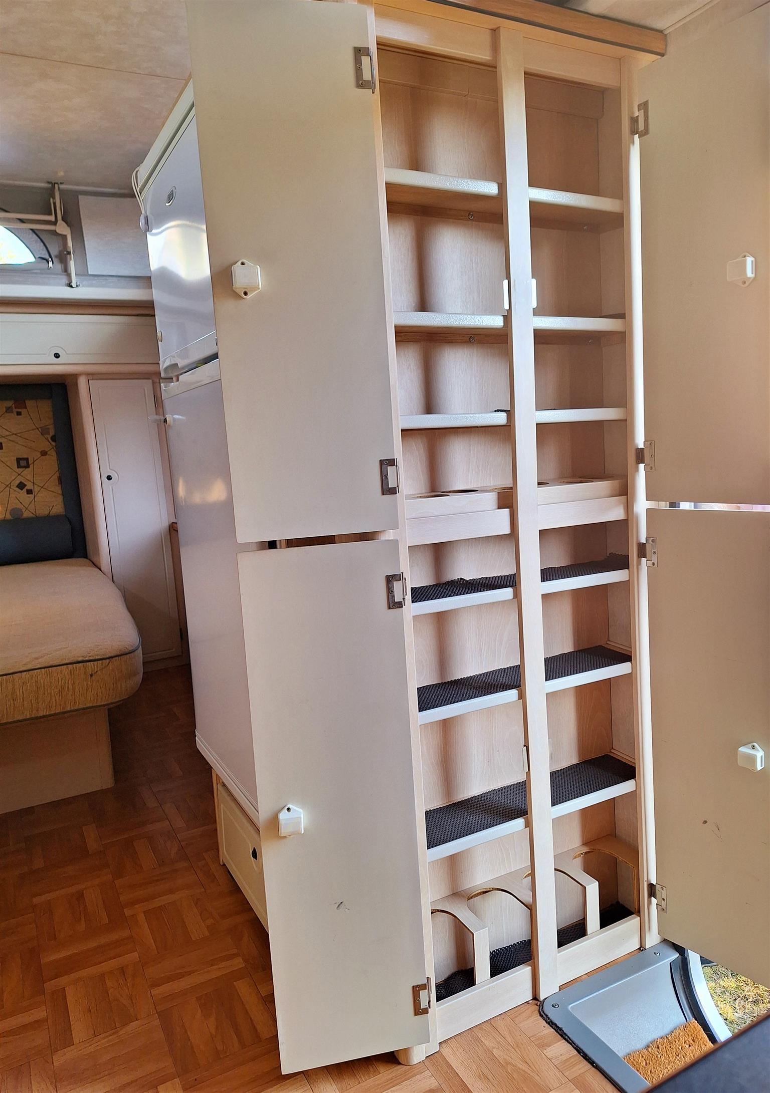 Double door fridge freezer. Extra power points added. Ground sheets.