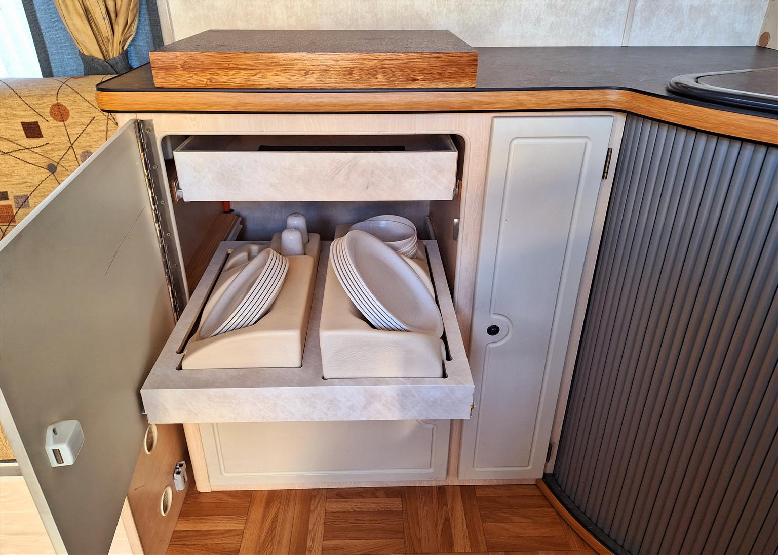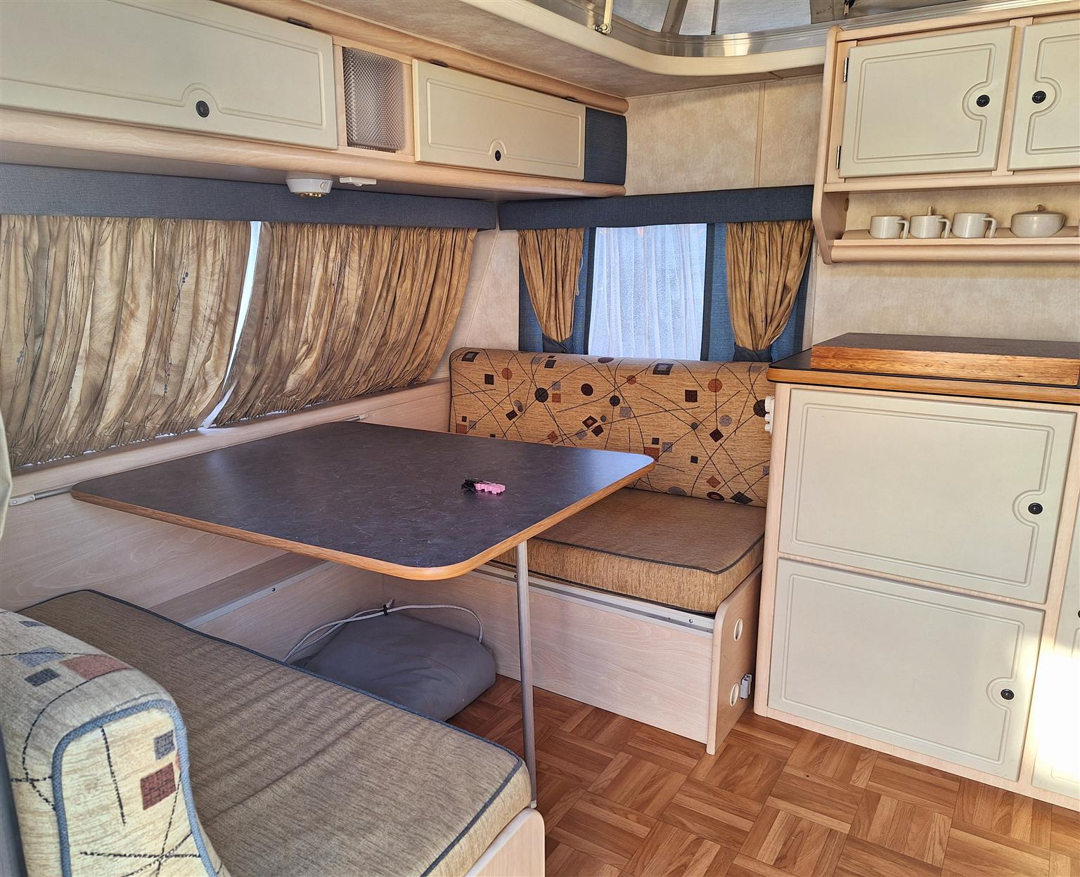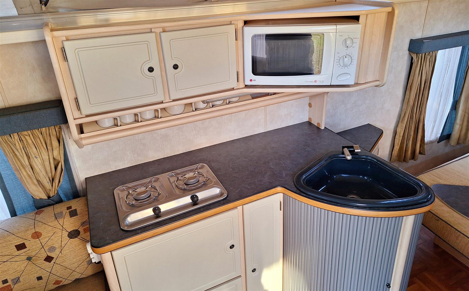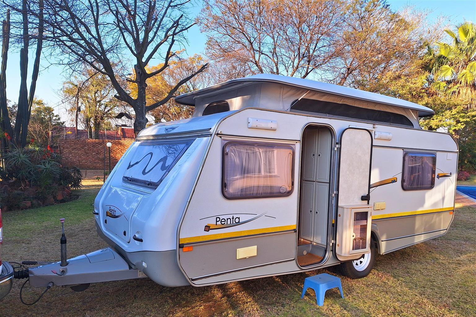 Double door fridge freezer. Extra power points added. Ground sheets.