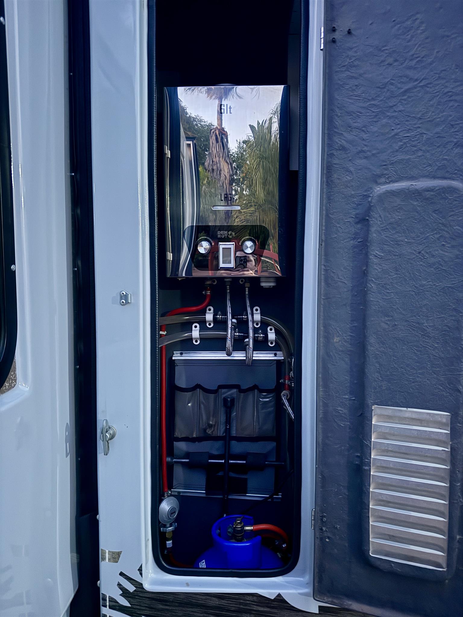 Gas bottle, fire extinguisher, 2x jerry cans, rear-mounted spade