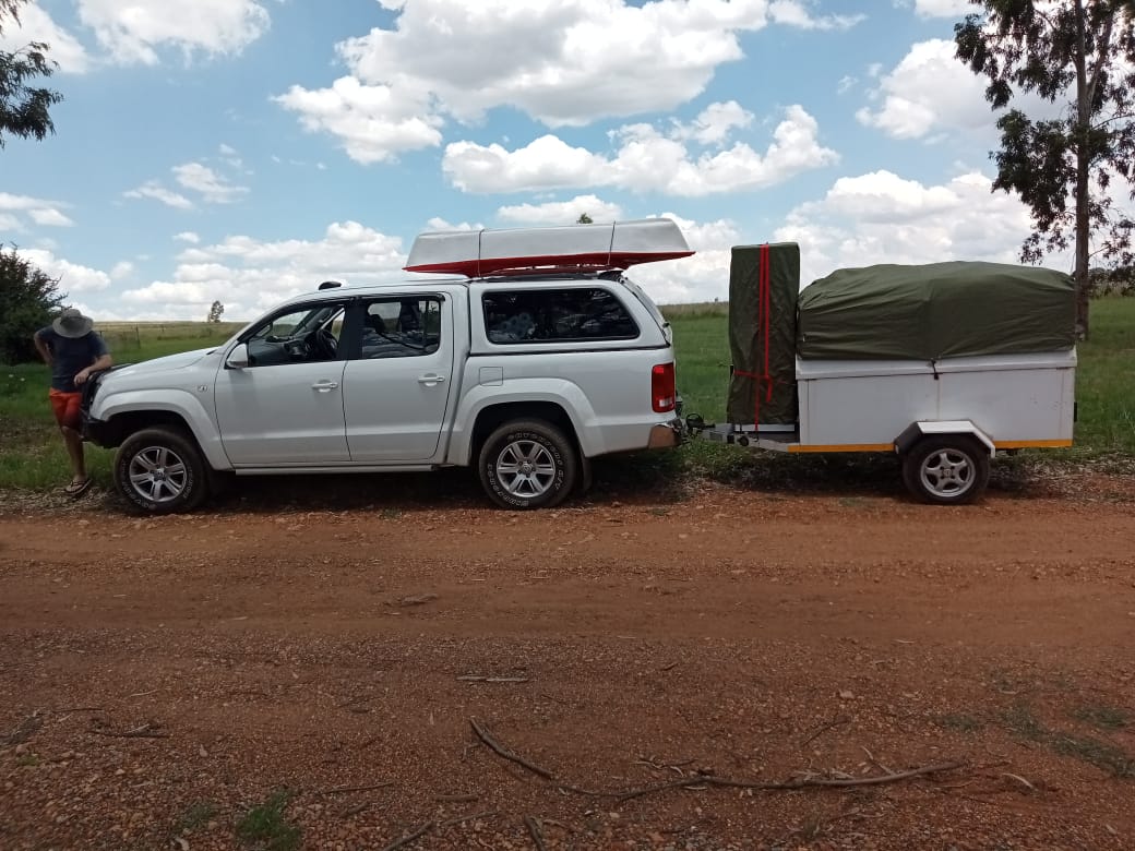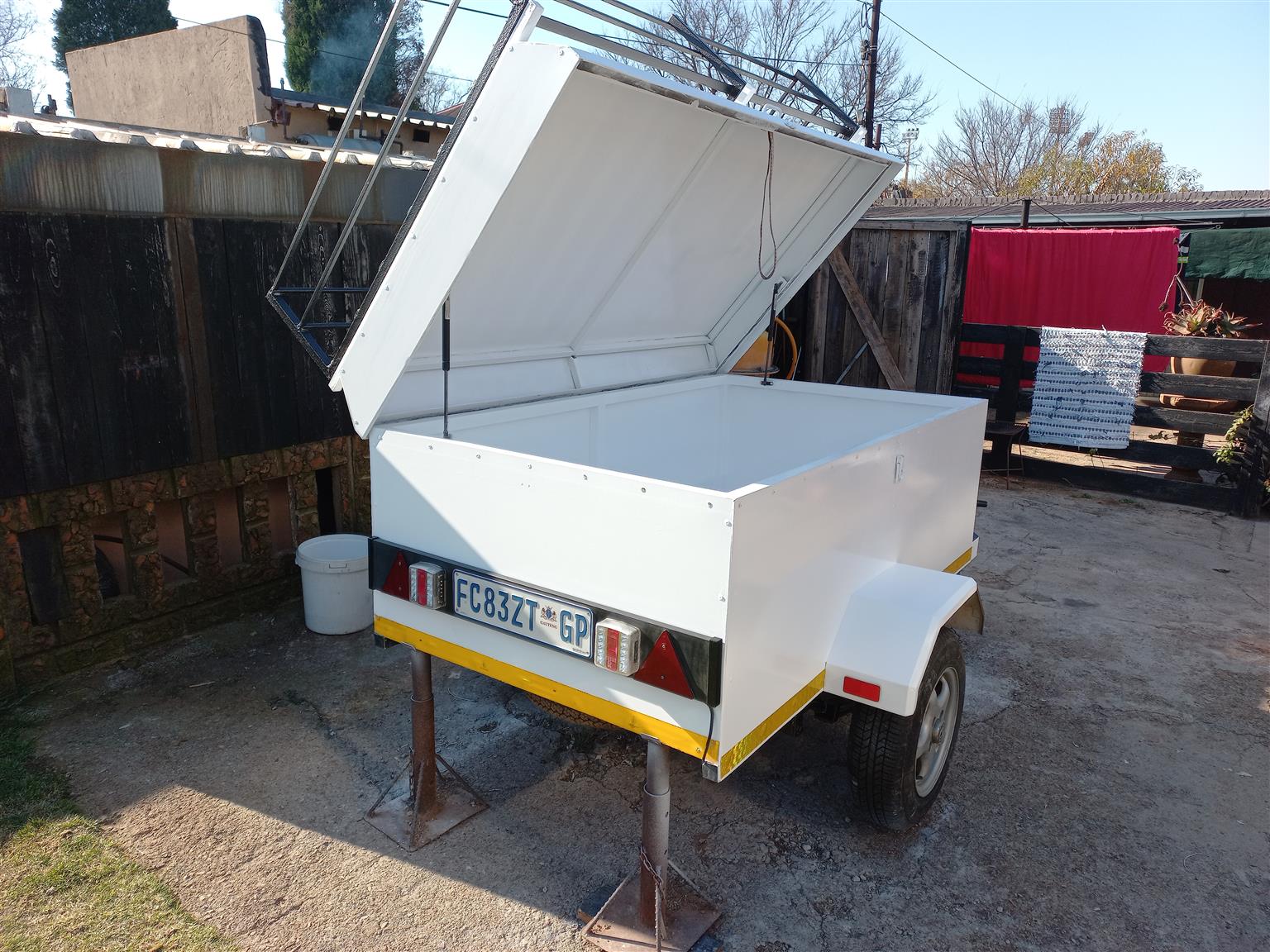 Strong self build trailer with roofrack and waterproof canvas for roofrack to keep stuff dry. License up to date, end Jan 2025 and papers in order. Tyres like new with spare wheel. R8000 or nearest offer