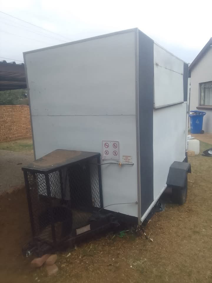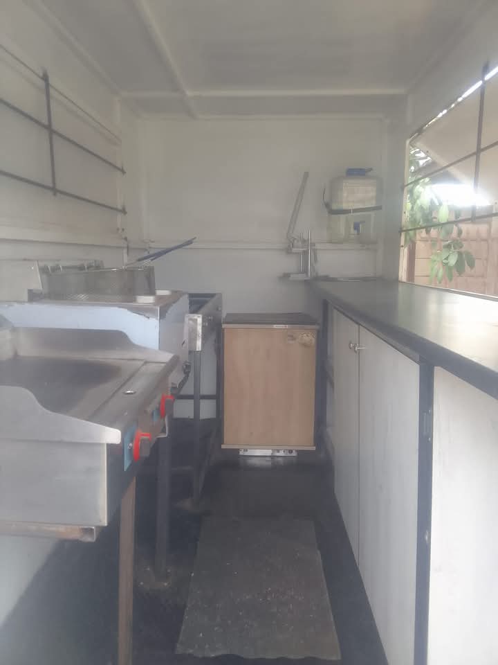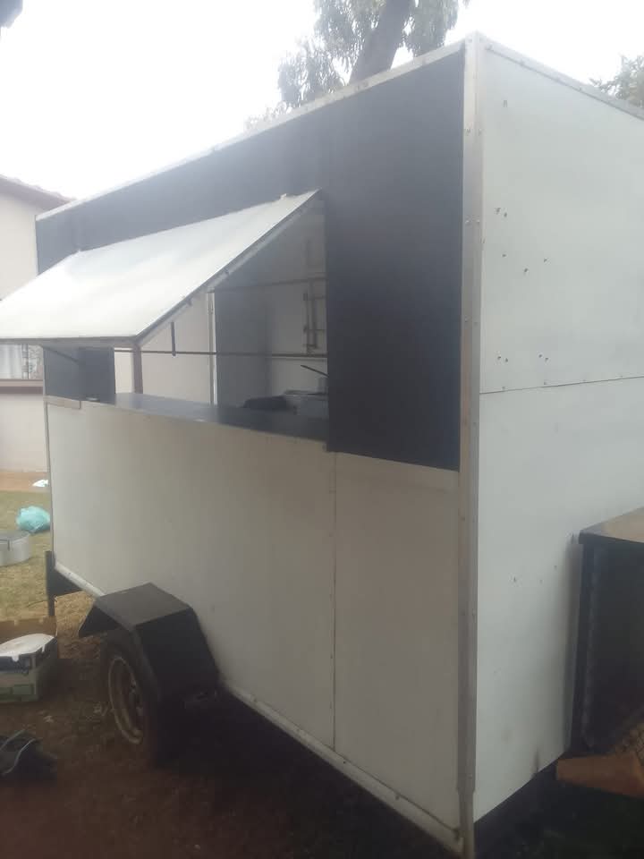 Food vendor for sale with small fridge, basin,potato cutter,griller ,3 plate stove and cupboards.Its on the road and also have Certificate of compliance.