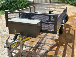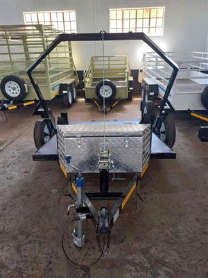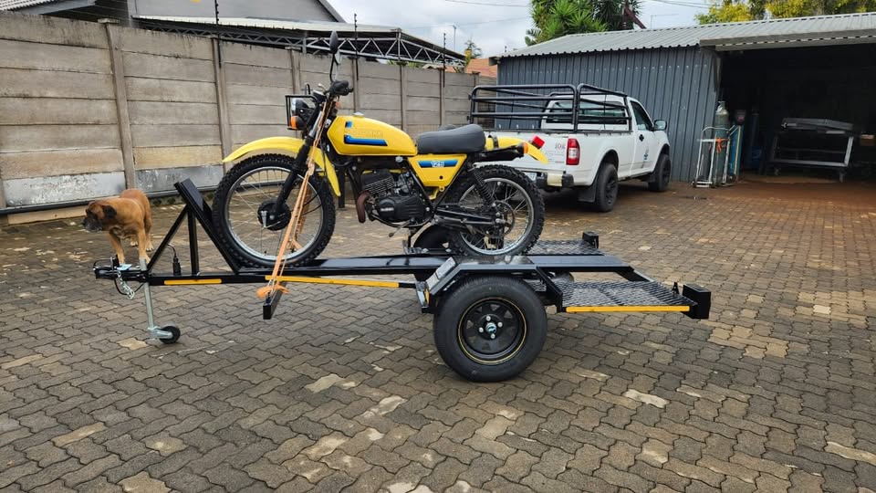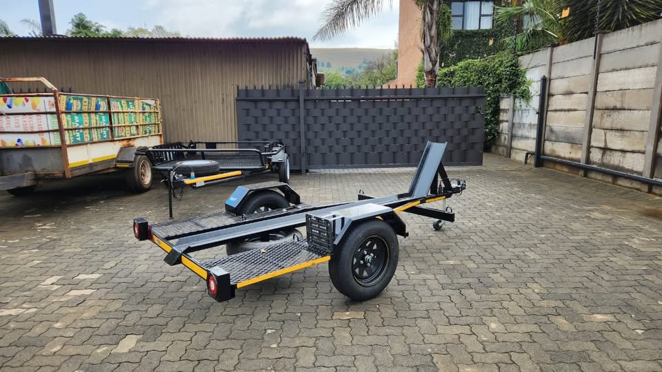 Light Weight Single Bike Trailer for Sale Rubberide Axle Unbrake Unbrake Coupler 32 Jockey Wheel Bike Rail 13" Wheels Spare Wheel Lockable Spare Wheel Bracket 4x Tie Down Hooks LED Lights Papers with Roadworthy Color: Black Brand New R16 900 excl Waverley, Pretoria Call: WhatsApp: Custom Bike Trailers & Steelworks
