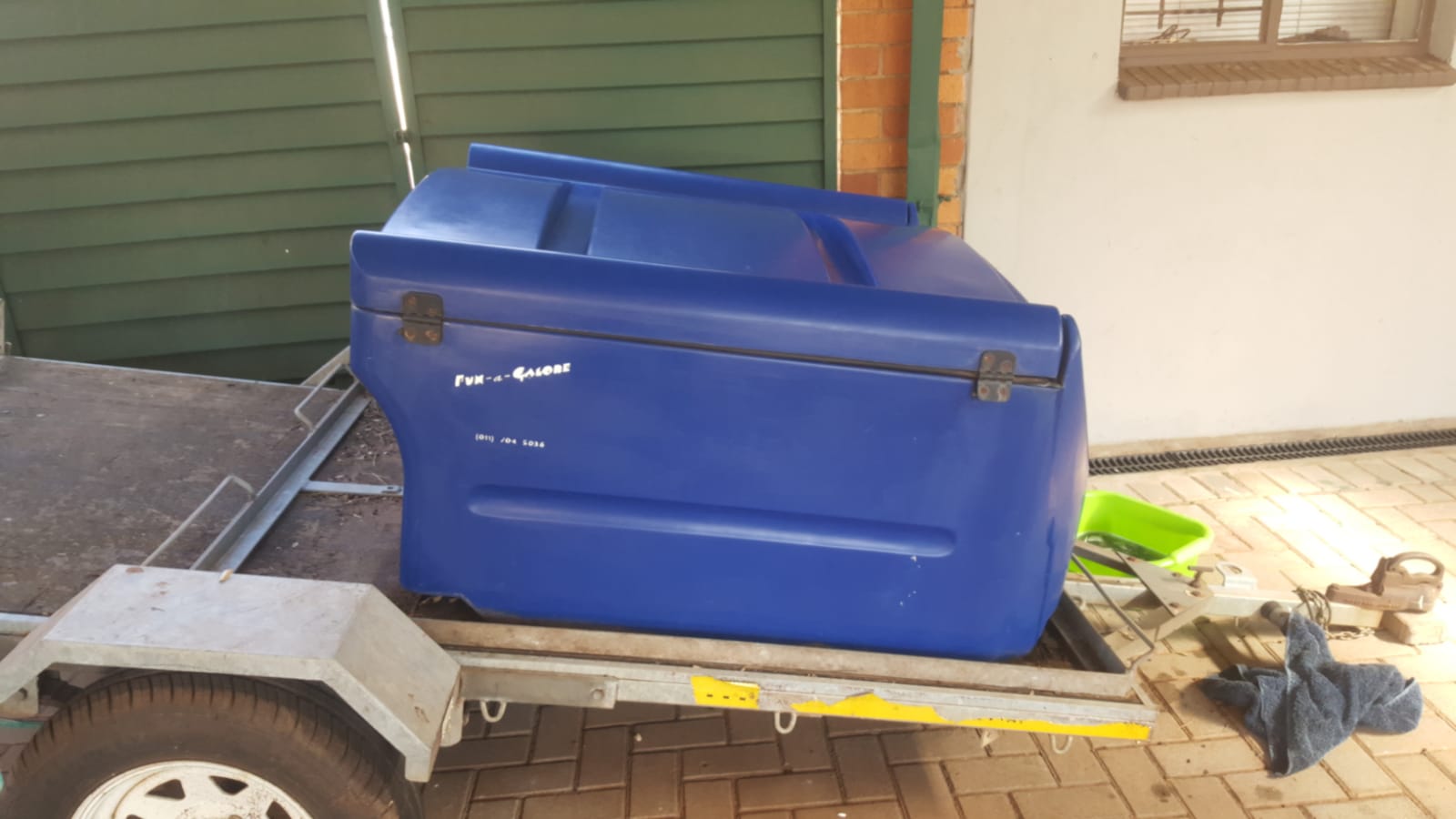 Very rare fold away fun - a- galore quad trailer with quad rack and fun box.. Papers in order and licence up to date...