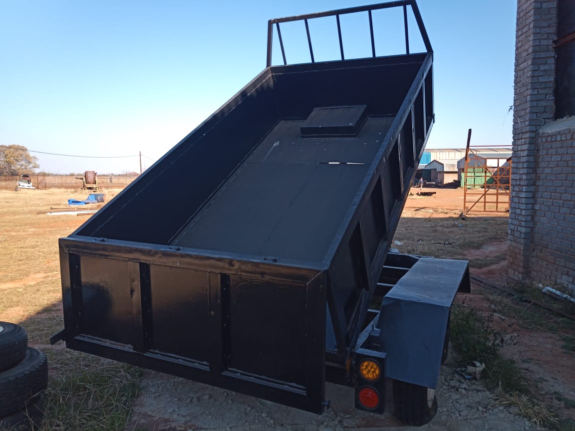 2.5 Cubic meter tipper trailer with Rubex Axles and Breackneck Hitch.