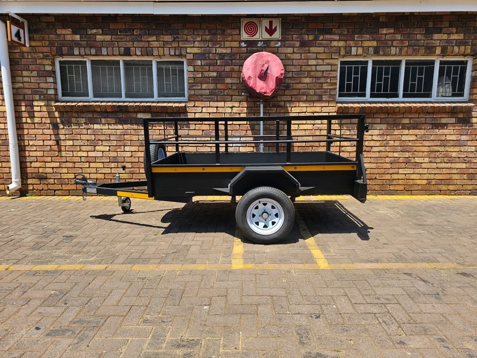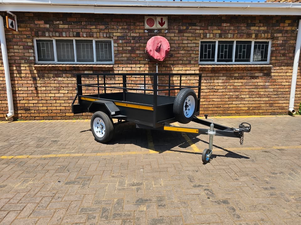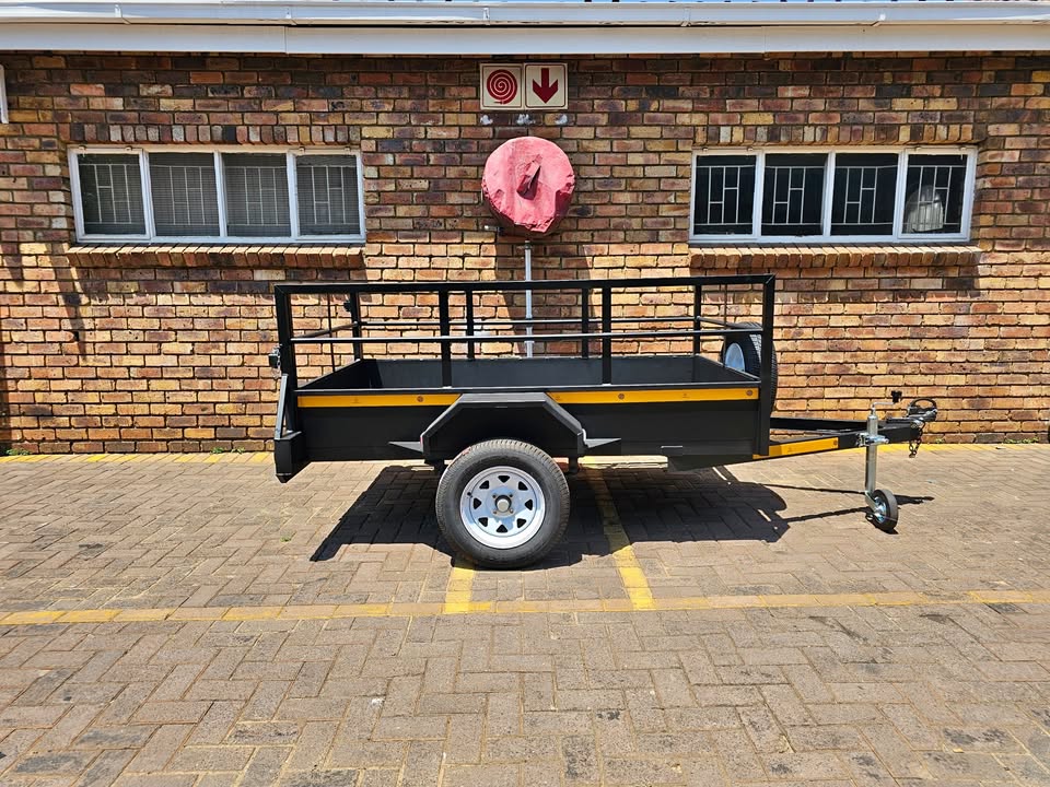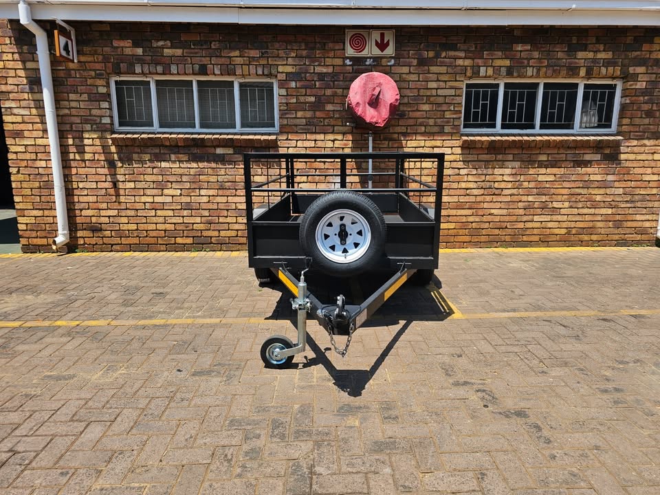 - 2 Meter X 1.2 Meter X 700 MM Swing gate on back. - Spare wheel bracket mount on front of a-frame. - LED Truck Lamp Sealed Lights - Jockey stand on front Suspension - Single Axle Unbraked 40mm RND (PCD 4/100) - 5 Blade Leaf Springs 27" (940kg) - 13" 155/80 Rim & Tyres (Pro-white) - Clipon Coupler (Safety chain welded on) Extras - Jockey wheel 48mm + Clamp = R999.99 - Spare wheel 13" Rim & Tyre = R1199.99 Note African Alliance Trailers (Pty) Ltd reserves the right to change any price indicated on print or digital format without prior notice. All prices include VAT @ 15%. *Photos on this website are for illustration purposes only and could include optional extras like the spare wheel, jockey wheel, lifting leg, ramp(s) or nose cone.