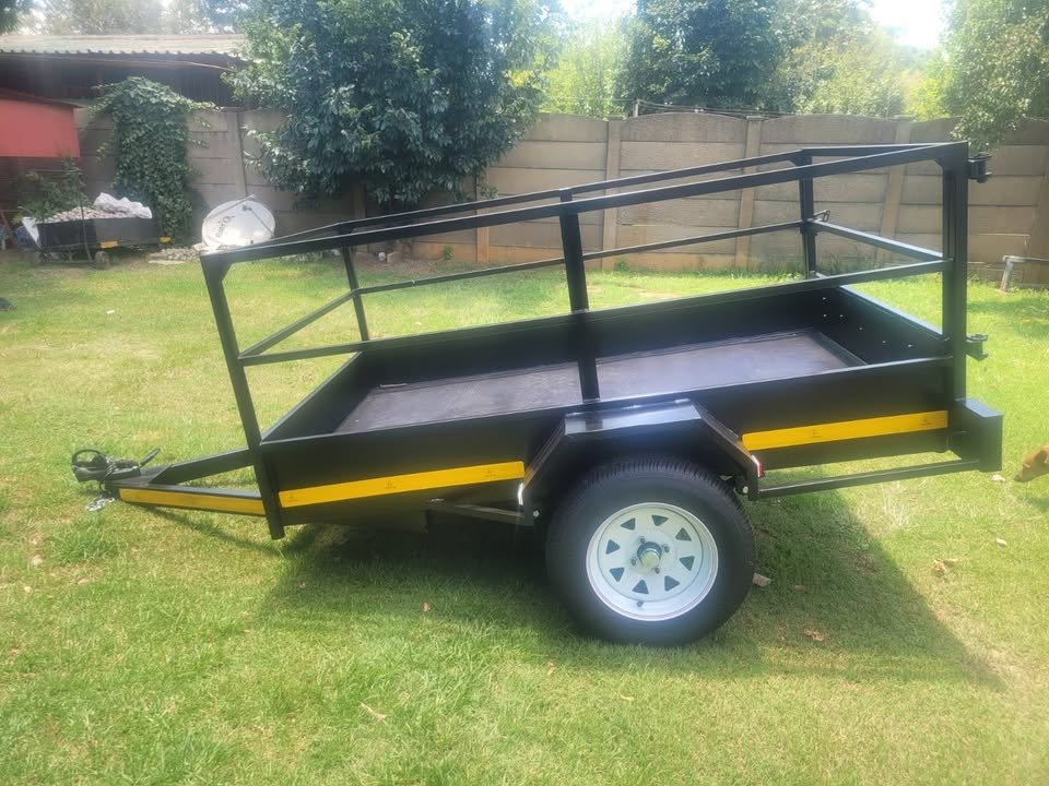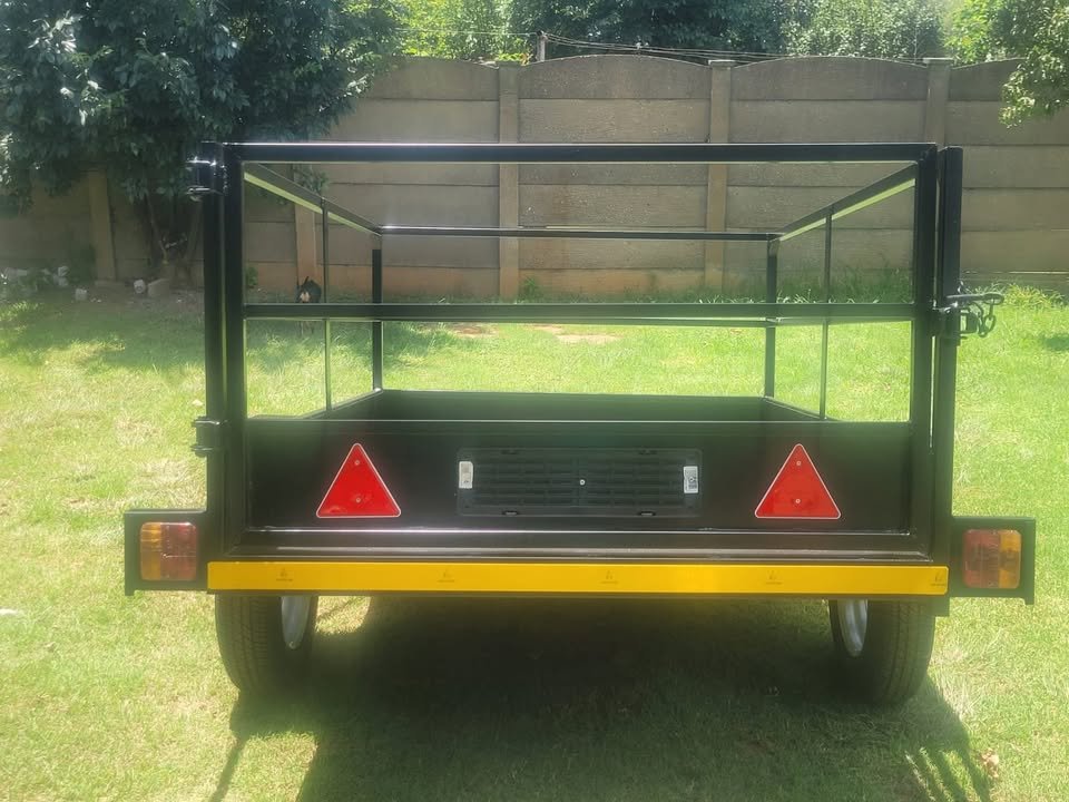Dimensions: 2.4 Meter X 1.2 Meter X 700 MM Features: -> Swing gate on back. ->Spare wheel bracket mount on front of a-frame. -> LED Truck Lamp Sealed Lights. Suspension: -> Single Axle Unbraked 40mm. -> 5 Blade Leaf Springs 27" (940kg). -> 13" 155/80 Rim & Tires White or black rims. -> Clip on Coupler (Safety chain welded on)