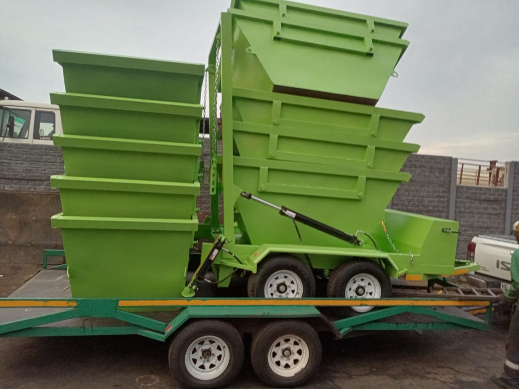 SKIP BINS COMBO SPECIAL 10 SKIP BINS AND 1 SKIP TRAILER THAT ARE MADE FROM HIGH QUALITY STEEL AT AFFORDABLE PRICE INCLUDES THE BREAK AND HYDROLIC SYSTEM AND VALVES WITH PAPERS FOR TRAILER FOR MORE INFORMATION CALL0750030739view more / 0745208019view more LAND LINE IS 0119141035view more