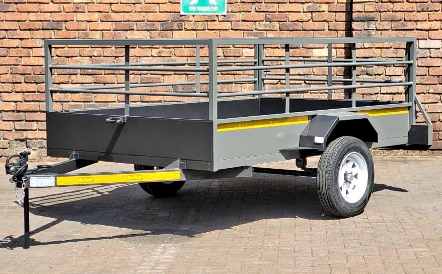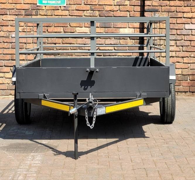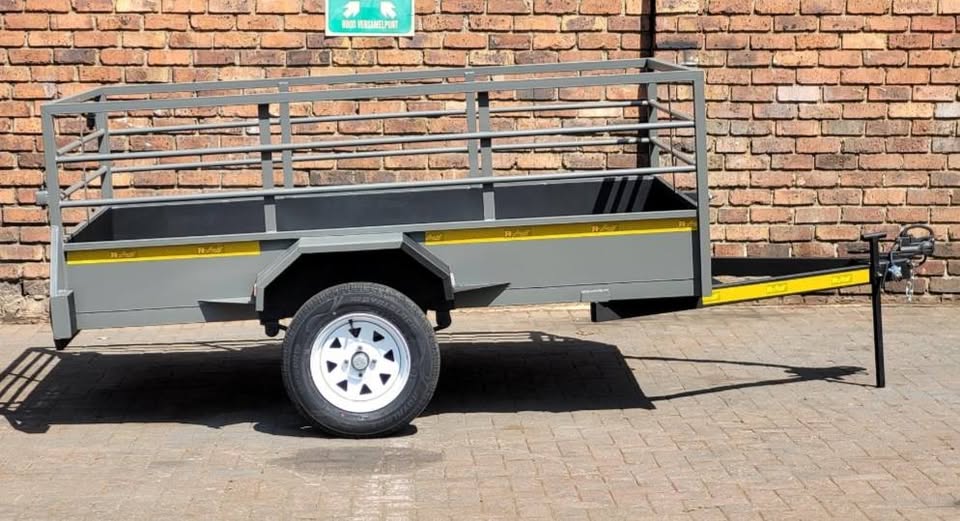 3 Meter X 1.5 Meter X 900 MM ⁃ Swing gate on back. ⁃ Spare wheel bracket mount on front of a-frame. - LED Truck Lamp Sealed Lights Suspension - Single Axle Unbraked 40mm RND (PCD 4/100) - 5 Blade Leaf Springs 27" (940kg) 13" 155/80 Rim & Tyres (Pro-white) ⁃ Clipon Coupler (Safety chain welded on)