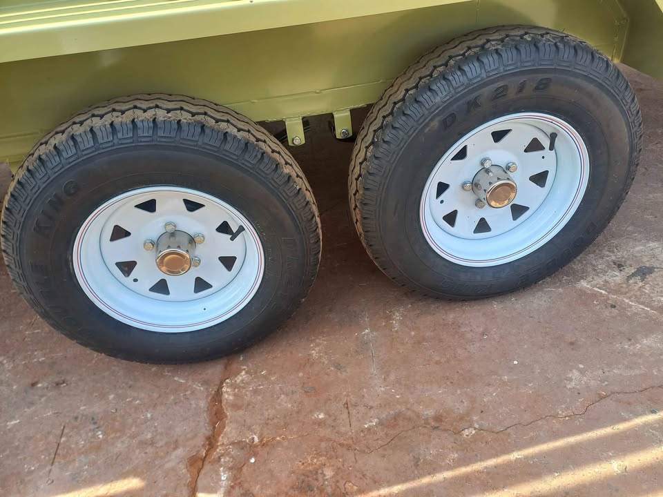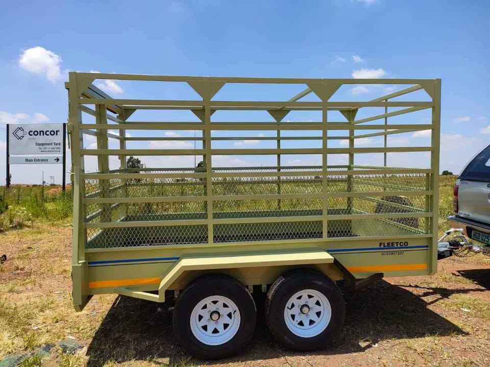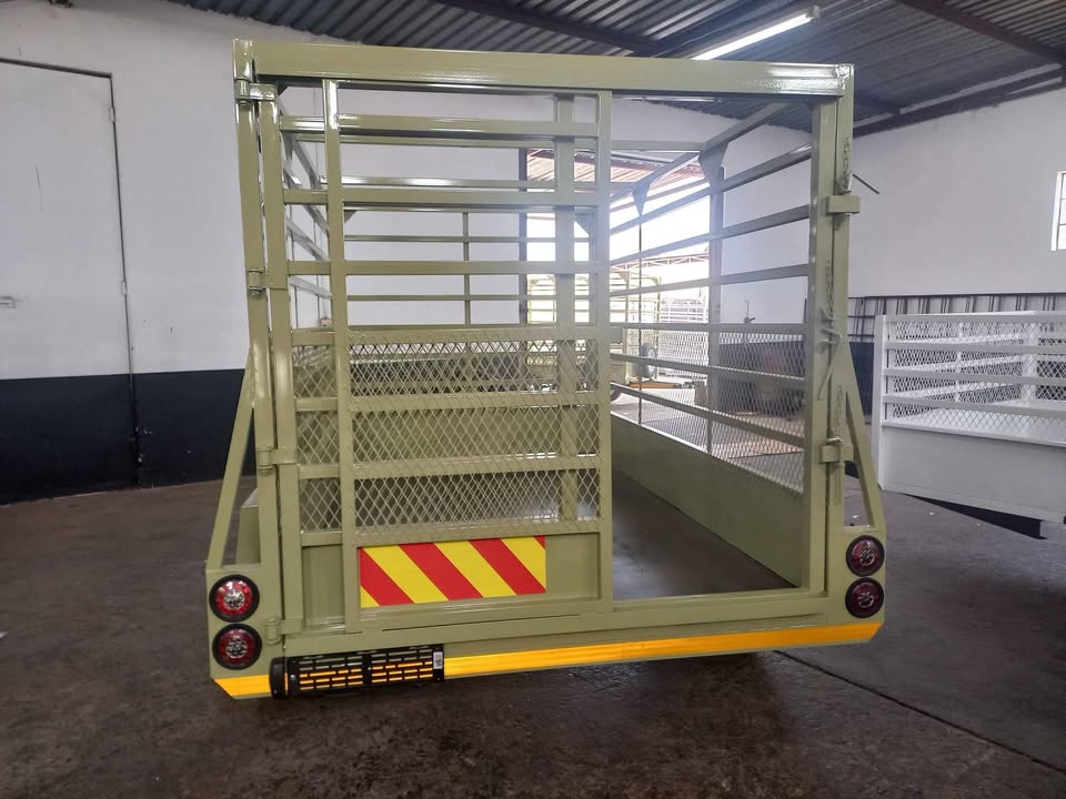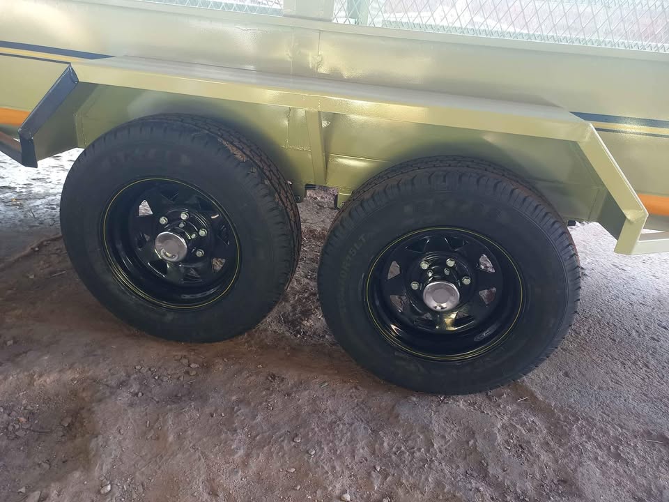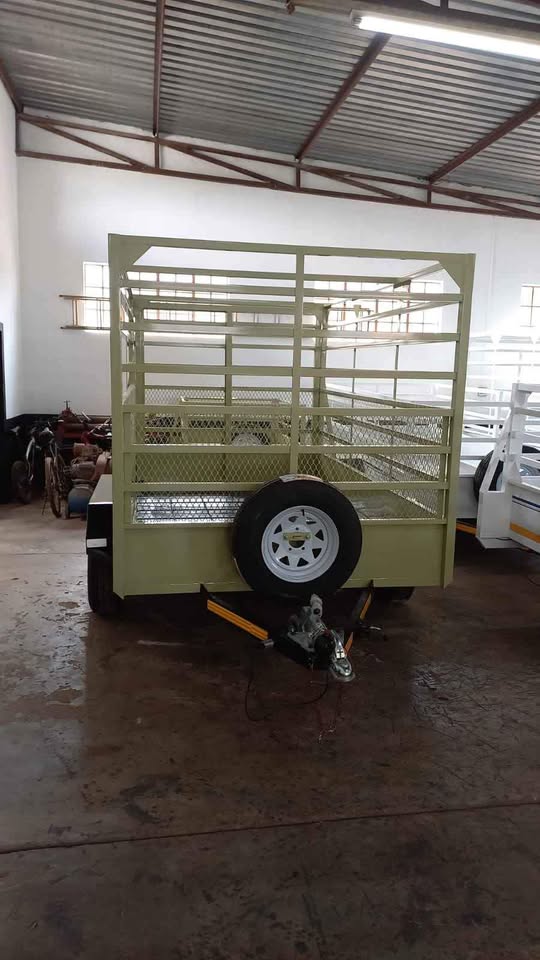 For availability or to place an order call or whatsapp Jeunice Grobler 068*332*3203 Whatsapp is welcome for the pin location of the factory located in westonaria We are SABS approved and all our prices includes vat, ID dot, papers and through the test 7-14 working days to build and complete the trailer 3m x 1.7m x 1.750m Double axle single braked 14" wheels Lockable spare wheel Universal lock Jockey wheel Removable floor grid Steel disc holder Sliding gate at the back and the whole gate opens LED lights Optional at an extra cost Black rims Wheel caps 1L touch up paint
