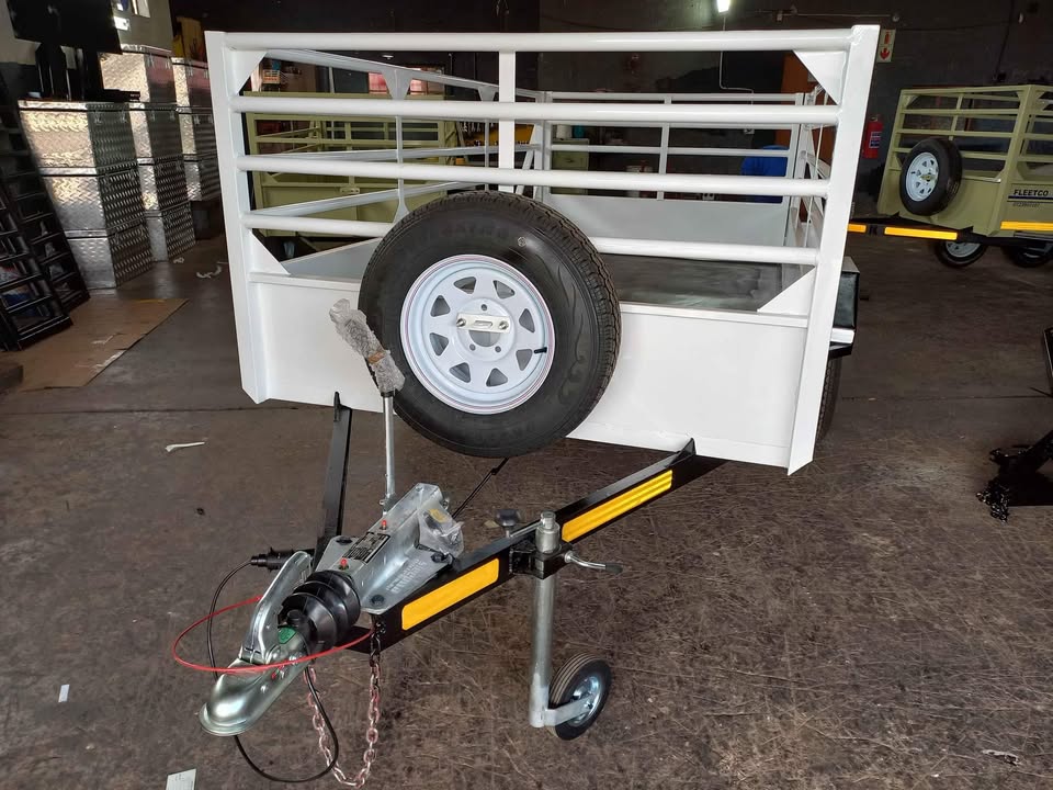 For availability or to place an order call or whatsapp Jeunice Grobler 068*332*3203 whatsapp is welcome for the pin location of the factory located in Westonaria We are SABS approved and all our prices include vat, ID dot, papers and through the test. 7-14 working days to build and complete the trailer Color option white or khaki for the same price 3m x 1.5m x 1m Single axle braked 14" wheels Lockable spare wheel Universal lock Jockey wheel Steel disc holder LED lights Optional at an extra cost Black rims Wheel caps 1L touch up paint Canvas or pvc cover