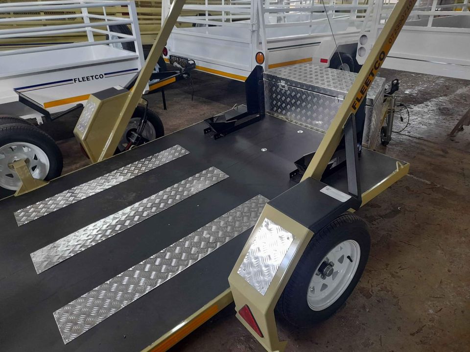 2.450m x 1.750m single axel unbraked Swivel easy loader Bike trailer with 13" tyres. Papers, ID Dot, Vat, Spare wheel, Jockey wheel, Universal coupler lock, LED lights, steel licence disk holder.