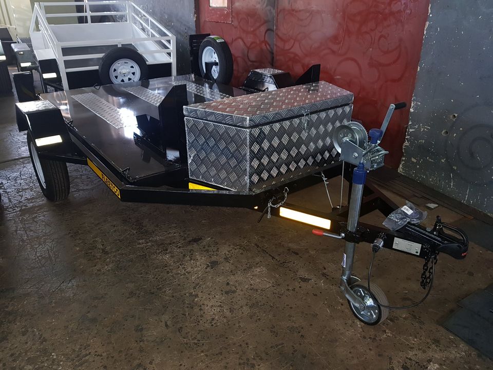 2 Bike Easy Loader Swiffle Bike Trailer for Sale, Brand New, Papers, Vat, Id Dot, Spare Wheel 13'', Jockey Wheel, Winch, 2x Wheel Cathers, Led Lights, Steel Disk Holder, Universal Coupler Lock Included. Trailer Is Sabs, Roadworthy. Self-Registration, Colours Available – White and Khaki and Black R 26 540.00 For Bike Trailer Without Box, R 31 370.00 For Bike Trailer with Aluminium Toolbox. Contact Alichia Henderson 072 566 9160view more. Westonaria Located at No 20b Doveton Street at Fleetco Factory. Facebook Pages, Fleetco Trailers and Fleetco Factory. Visible on Google Maps as Well