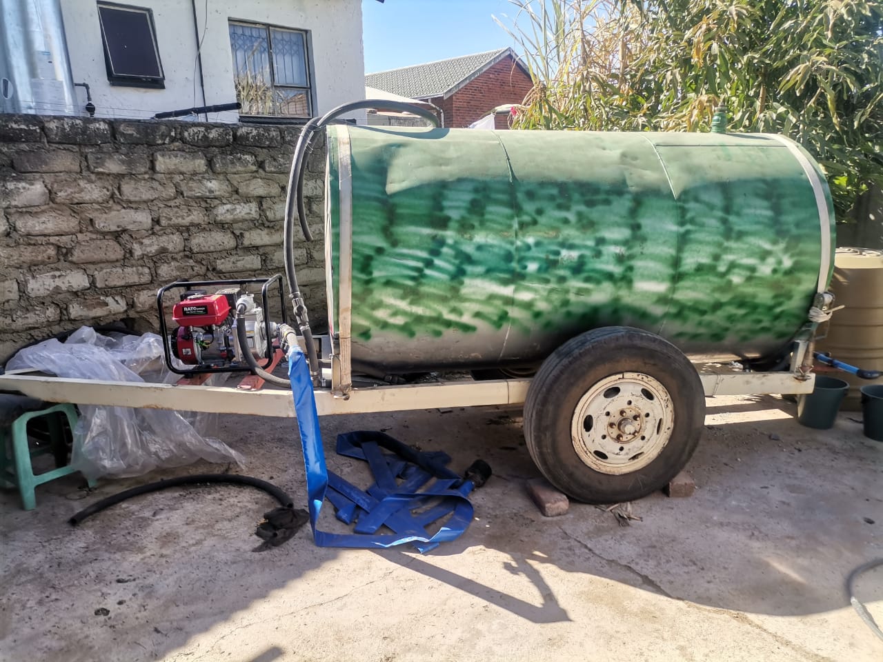2000ltrs Dust Suppressing Trailer, New Petrol Powered Water Pump, New Water Pipes, Very Good For Road Constructions, Price Negotiable
