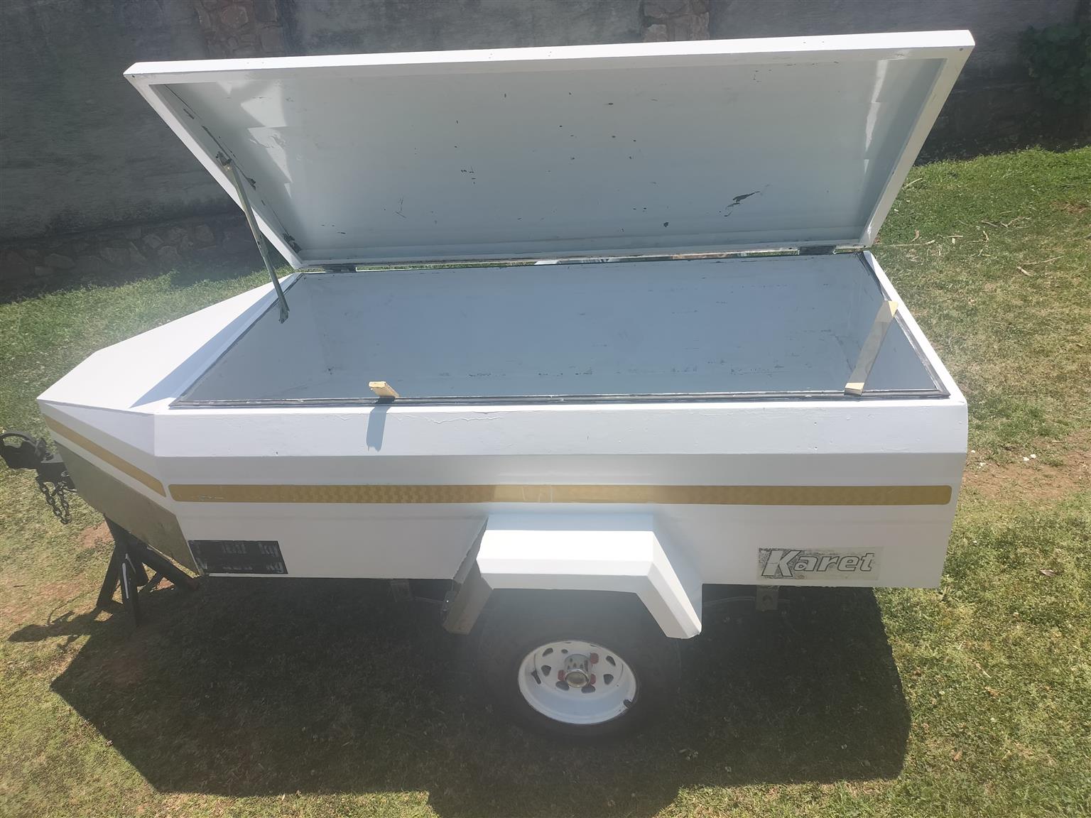 6foot karet trailer,newly painted, new tyres,good time,lights working,jockey wheel ,papers ready and in road . Good sturdy trailer ready to use