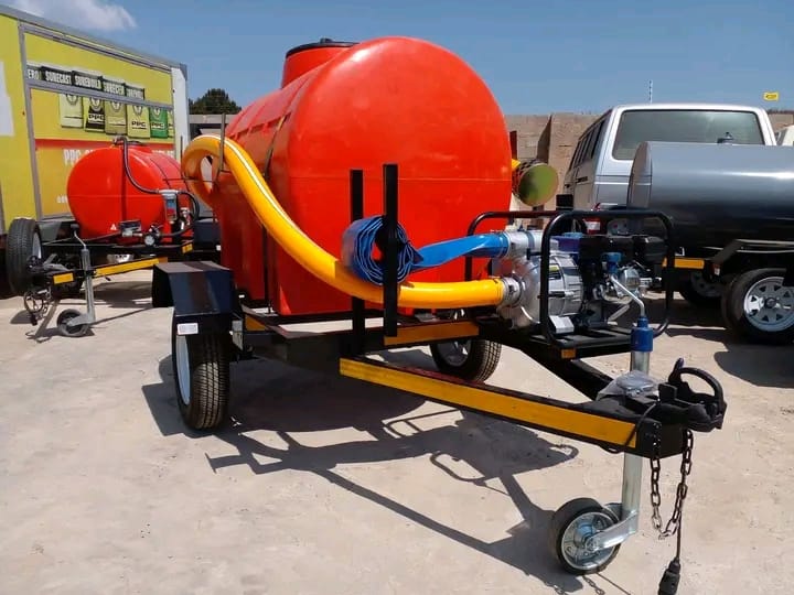 1000L polyurethane bowser single axle with 14" wheels braked axle, with honey sucker pump.