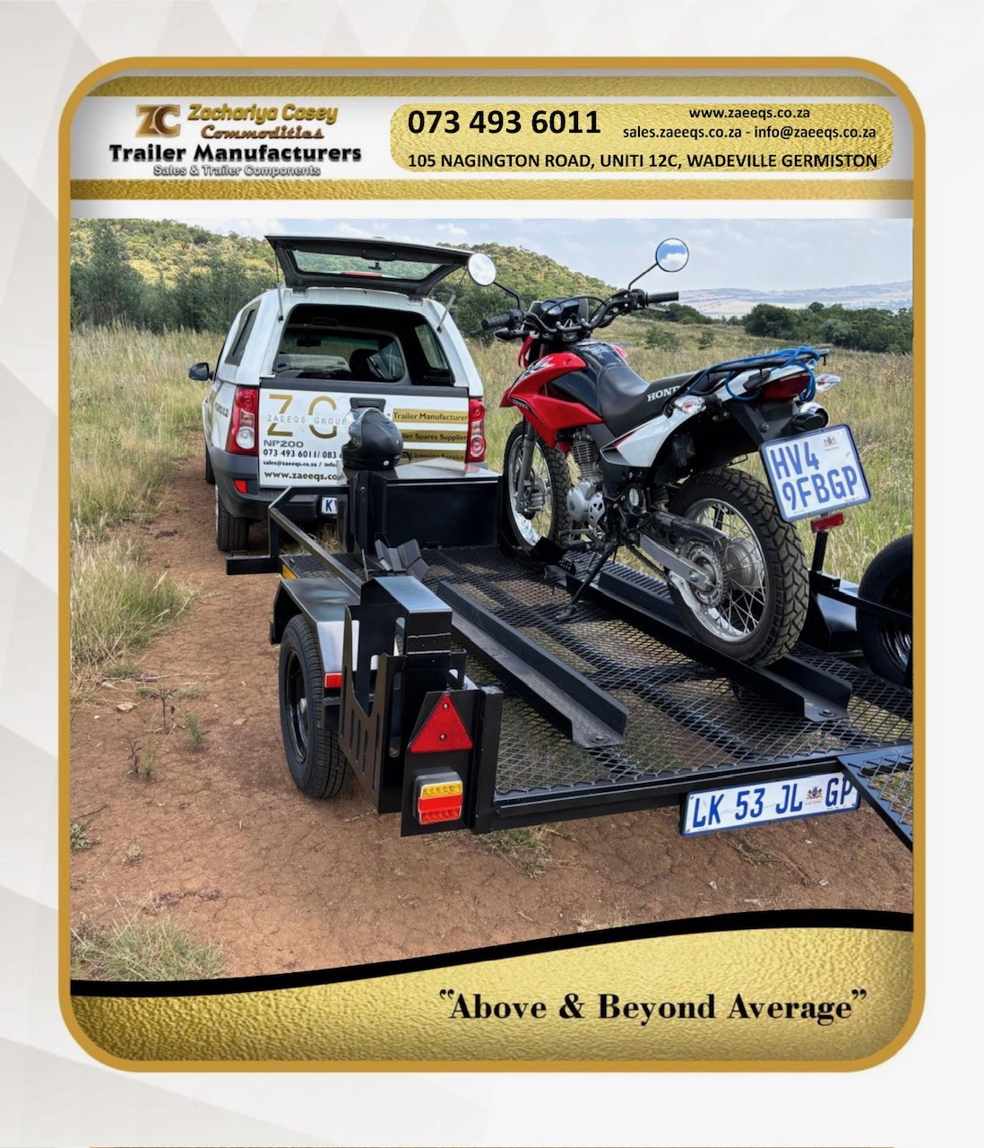 Our Mx trailers are built tough and reliable. Load 2 Mx bikes comfortably.