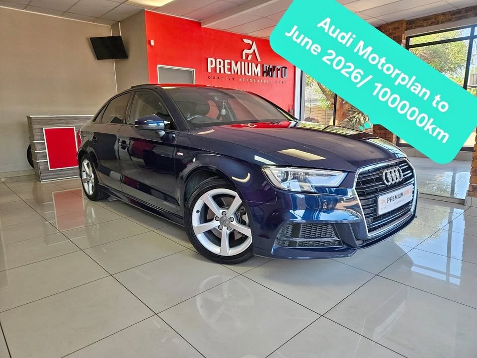 CONTACT DEON 081*489*2428 Discover this stunning one-owner 2017 Audi A3 2.0 TFS AUTO/40 TFSI Sedan, finished in a striking blue colour. With only 89,200 km on the clock, this vehicle boasts excellent condition and a full service record. Powered by a lively 140 kW petrol engine paired with a S Tronic transmission, it offers a maximum speed of 250 km/h and impressive fuel efficiency of 5.6 L/100 km, making it both fun and economical to drive. The car features a sunroof, climate control, leather seats, LED and Xenon lights, and electric windows, ensuring comfort and style. Safety is well covered with seven airbags, ABS, park distance control, alarm, and cruise control. Additional features include a radio, air conditioning, and a motorplan valid until June 2026 or 100,000 km, providing peace of mind. The vehicle is available at Premium Auto in Gauteng for R299,900. This Audi A3 combines sporty performance, luxury, and practicality — perfect for those seeking a reliable yet exciting ride. Don’t miss out on this exceptional deal!