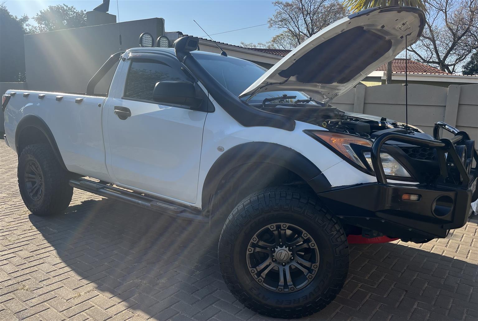 2014 Mazda BT-50, 3.2L, 4x4. Extras worth around R150 000. +-130mm (5") complete custom built lift suspension, built by East Rand Springworks. 290 000 km on the clock, 115 000km on the new FOMOCO engen, bought new from agents, fitted by master mechanic uncle Paul Goddard from the Mazda BT-50 Club(RMI approved). Full service history with original Mazda parts and Liqui Molly oils. Liqui Molly oils in diffs, transfer and gearbox. To many extras to mention. A/C, E/W, P/S, E/M, Ironman bullbar, rollbar, side runners, towbar, like new 315/70R17 Cooper Discoverer A/T tires, 17" A-Line 4x4 mags, oversize intercooler, pedal booster, bluetooth hands free, Viper 76mm S/S F/F exhaust from downpipe, ABS, Traction control, smash & grap tinted windows, seat covers, Mazda snorkel, rubberised bin, rear sliding window, bonnet guard, headlights and taillights trim, wheel arches, 2 way radio antenna, door scuff plates, 2 x spare keys. NO SPOTLIGHTS. ‼️R195 000 (OR to swop for a mechanically sound 1tonner single cab bakkie AND R150 000 settlement / finance) ‼️. Phone or Whatsapp if interested (Whatsapp preferred cause of signal at work).