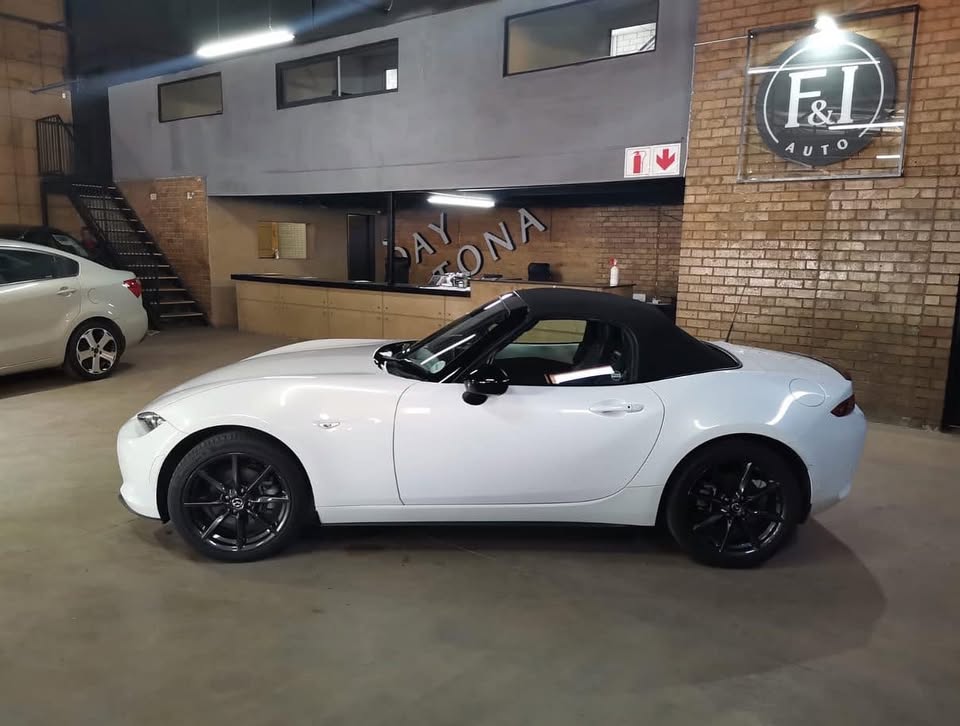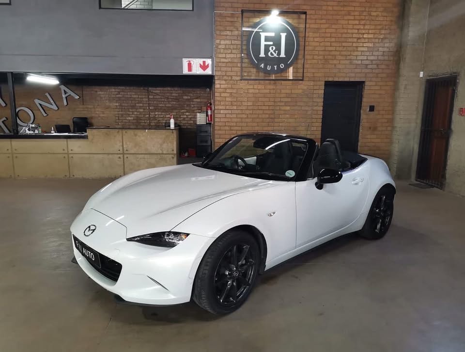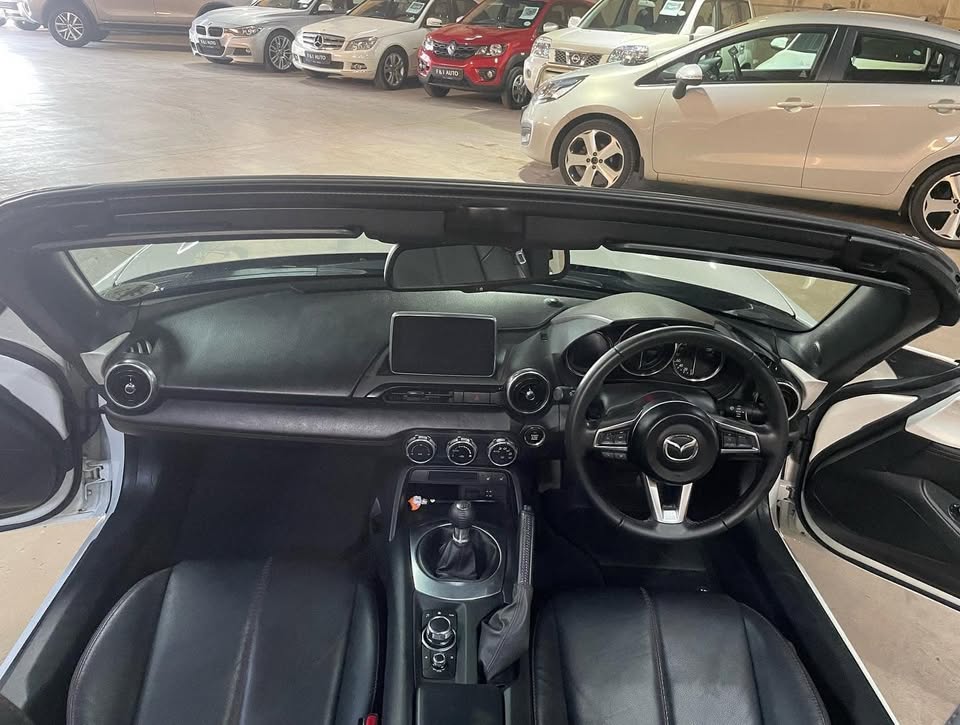 2016 Mazda MX-5 2.0 Roadster 6 Speed Manual Soft Top Cabriolet Pearl white in colour with black leather interior complimented with red stitching n aluminum trim ‼️ Genuine n Only 48000km with FSH Spare keys , Bose surround sound system , keyless entry , stop/start function 17inch black mags n tyres , heated seats , pdc rear , mfs , cruise control , daytime driving lights, xenon , hands free Bluetooth in headrest , rear boot spoiler , front half is vps , all other std extras n more A absolutely stunning vehicle Must be Seen Not often will u find so clean n so well kept ‼️R399950 Finance Available / Delivery Nationwide F&I Auto - 17 Ampthill Avenue Benoni 👉🏻Faeez - 👉🏻MJ -